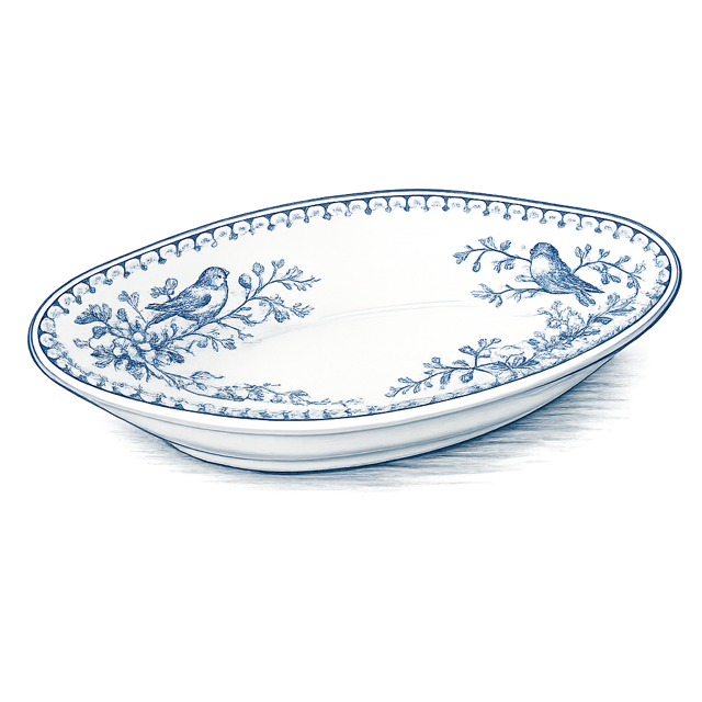 *必ずご購入前に「ショップ情報」にて注意事項をご確認の上、ご購入の手続きを行ってください。 【製造】 イギリス Brown-Westhead, Moore & Co(ブラウン=ウェストヘッド・ムーア社) INDIANA(インディアナ)シリーズ ディナープレート イギリスの名窯B.W.M.& Coが、当時のパリの高級店エミール・ブルジョワのために制作した特別な一枚。繊細なタッチで描かれた鳥たちと花リムのフォルムが、テーブルを19世紀の貴族のサロンのような優雅な空気感で包み込んでくれます。 またブルーグレーのようなニュアンスカラーはどんな料理にも合わせやすく、ディスプレイしても壁に馴染みやすく、オススメのシリーズです。 【サイズ】 直径約26cm ✕ 高さ約2.5cm 【状態】 若干のカトラリー跡の使用感あり。その他経年劣化は見られますが、大きなダメージもなく艶も残る美しいアンティークコンディションです。 【年代】 19世紀後半〜20世紀初頭 【アンティークについて】 当店で取り扱っているお品の多くは、50〜100年以上にわたり大切に使われてきたものです。そのため、ほとんどの商品に貫入や使用跡が見られます。特に目立つ点につきましては、画像や商品説明にてご案内しておりますが、記載のない細かな傷や風合いにつきましても、長い年月を経た品ならではのものとしてご理解ください。あらかじめご了承のうえ、お買い求めいただけましたら幸いです。 少しでも送料を抑えるため梱包材はリユースさせていただいております。新聞紙も使用させていただきます。ご理解ありがとうございます。