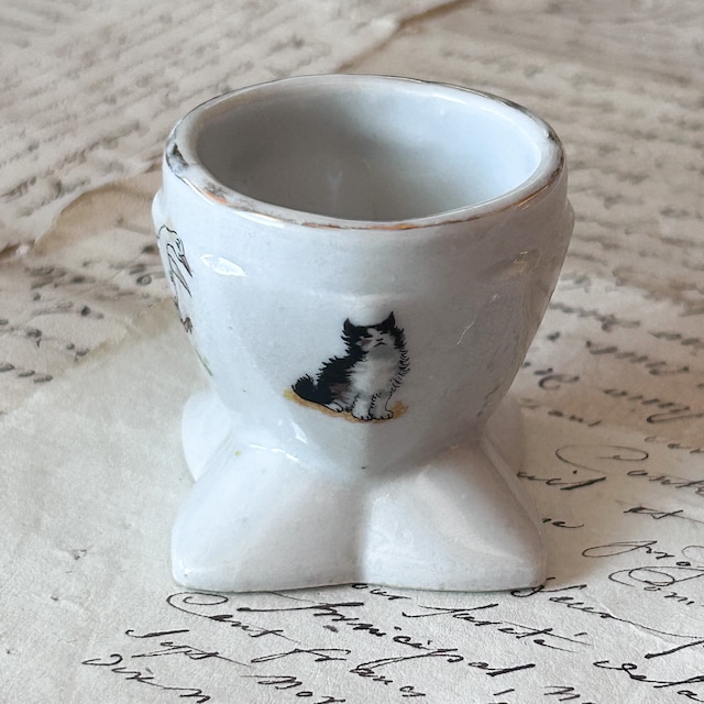 【フランスヴィンテージ】猫とアヒルがキュートなエッグスタンド