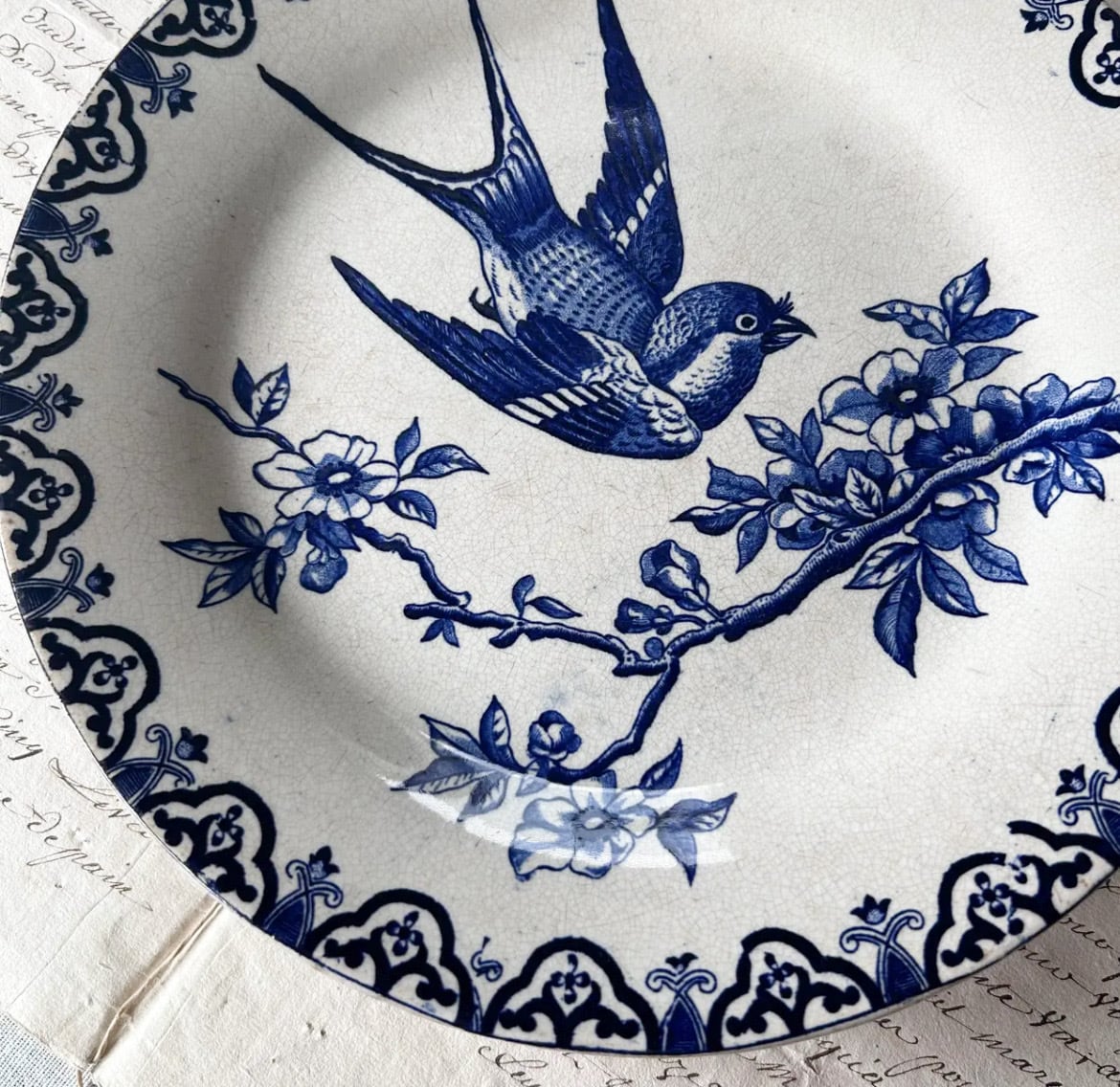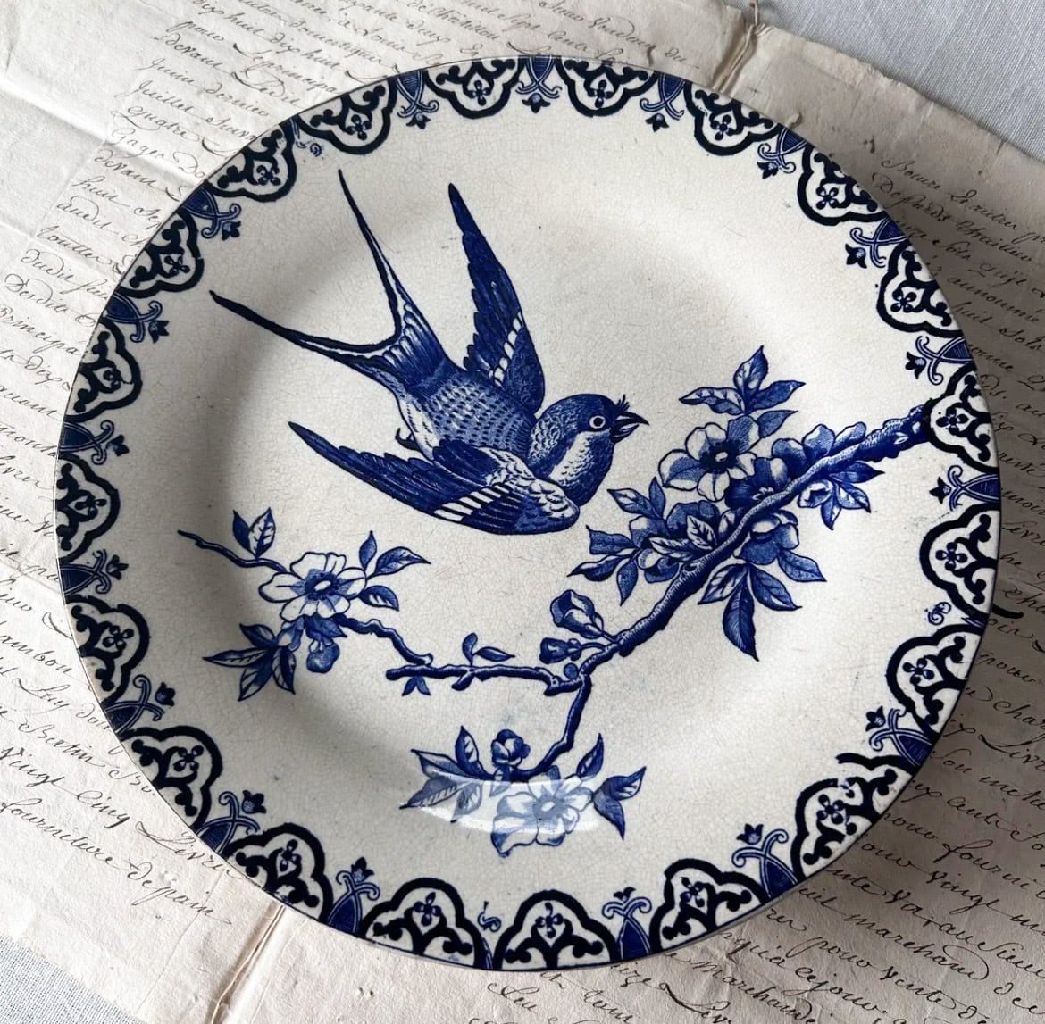 ⚫︎シャビーなアンティーク感たっぷりの素敵なコンポティエ。春を感じるツバメと梅の花が大胆に描かれています。Japonnaisというシリーズ名からも和にも使えそうな落ち着いたデザインです。お探しの方はこの機会にどうぞ。