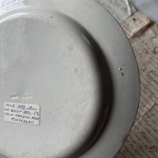 裏面のラベルに記載されているとおり、陶器本体は1820~1825年に製造され、装飾は1833~1840年頃に施されたと考えられます。