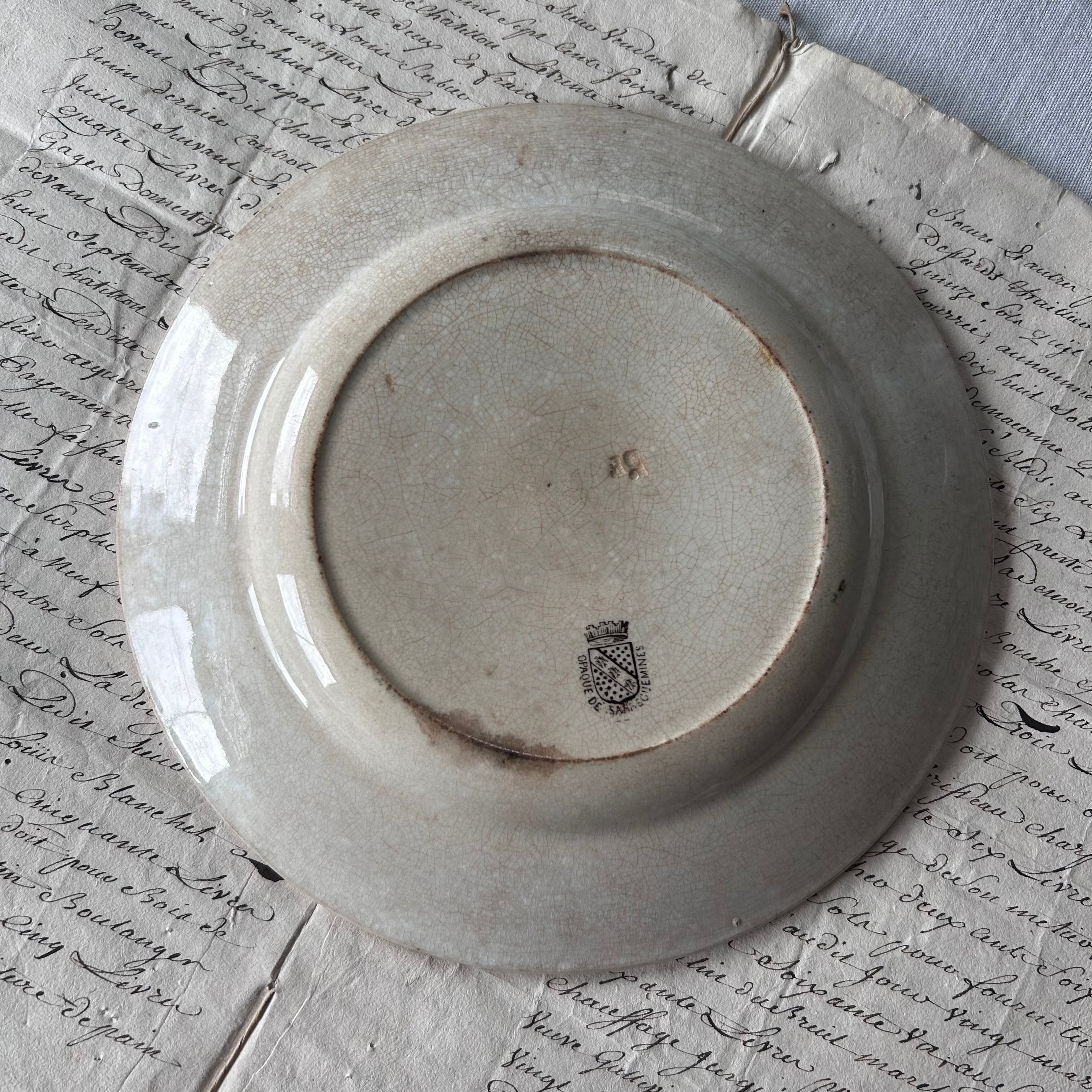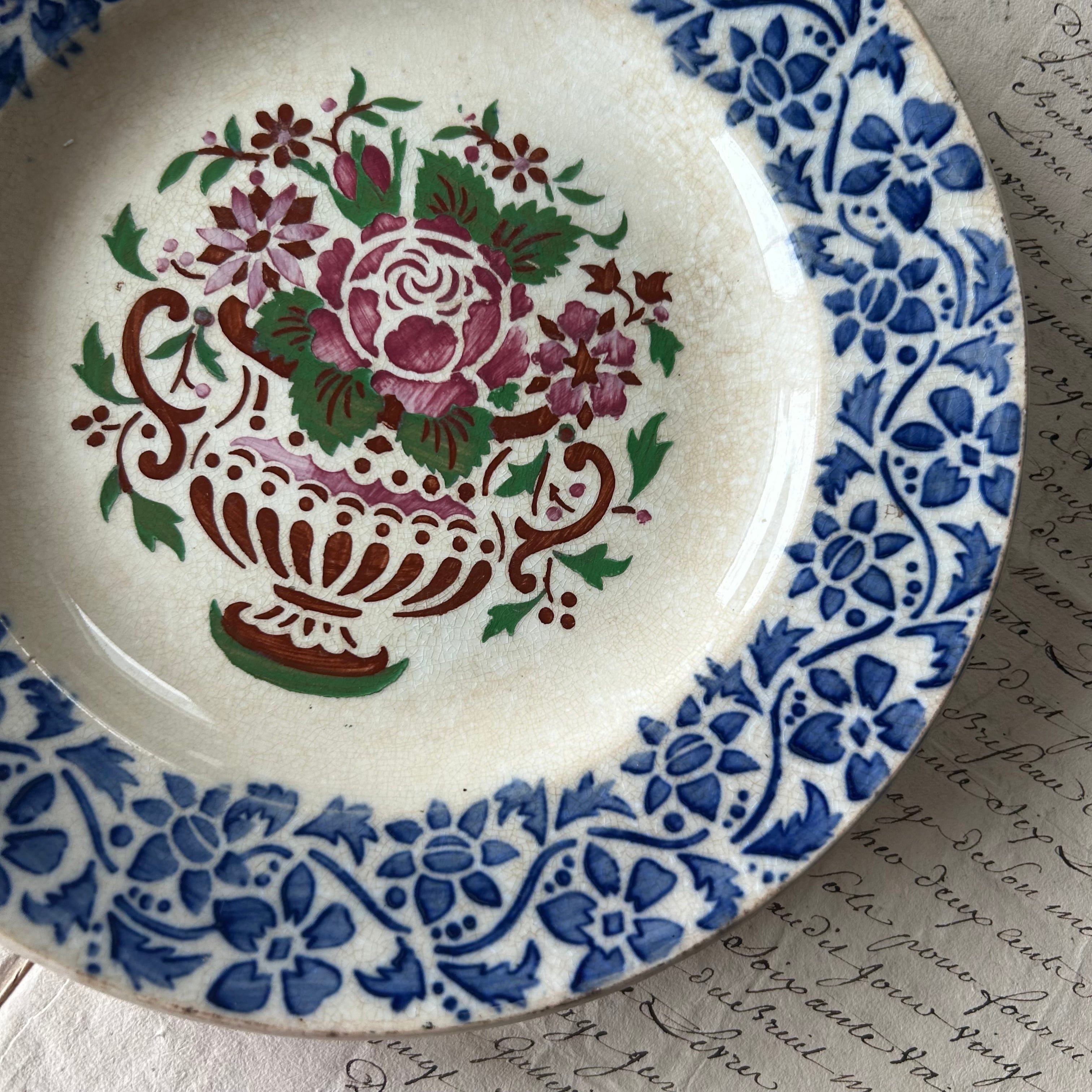 【フランスアンティーク】Sarreguemines (サルグミンヌ)ステンシルのバラが可愛い プレート