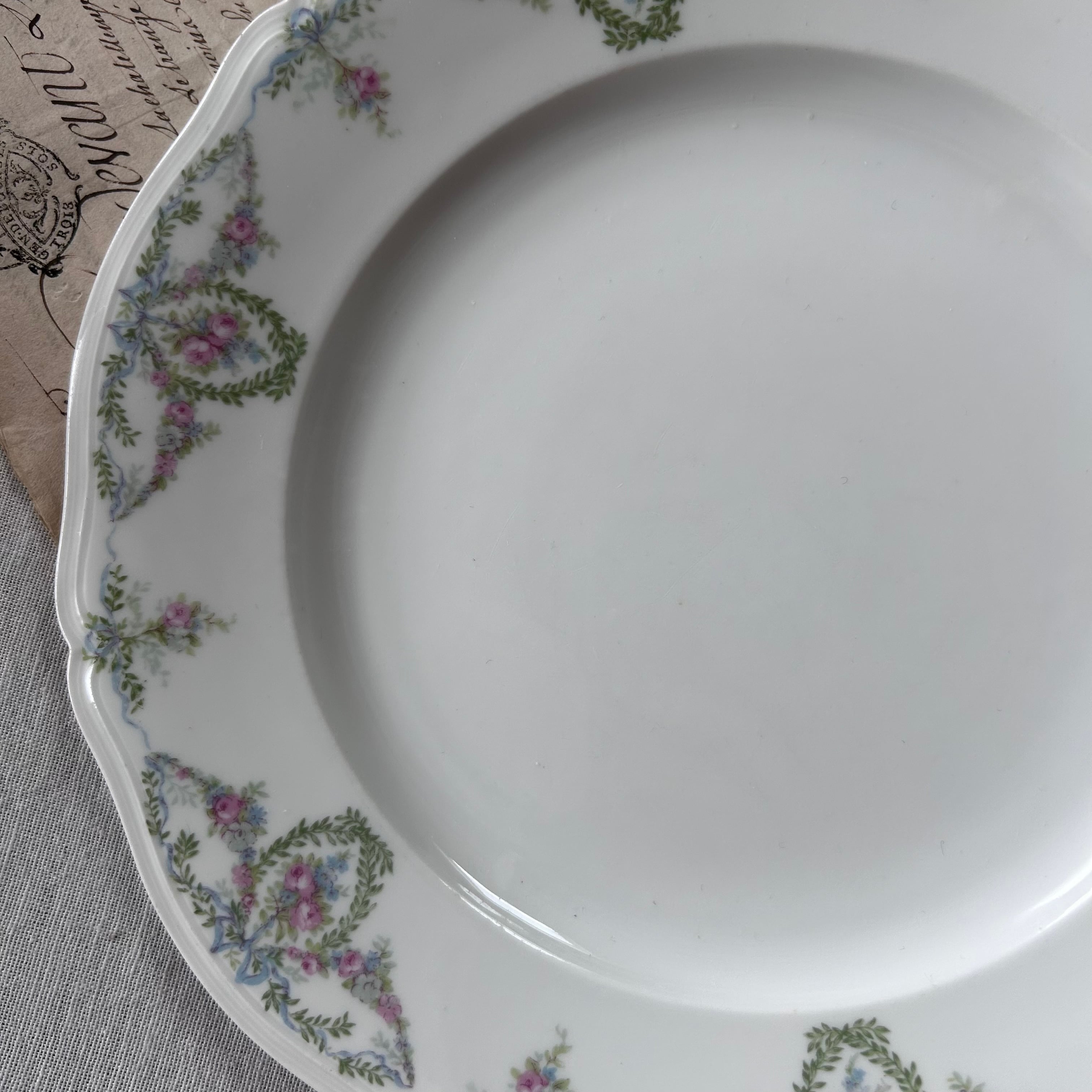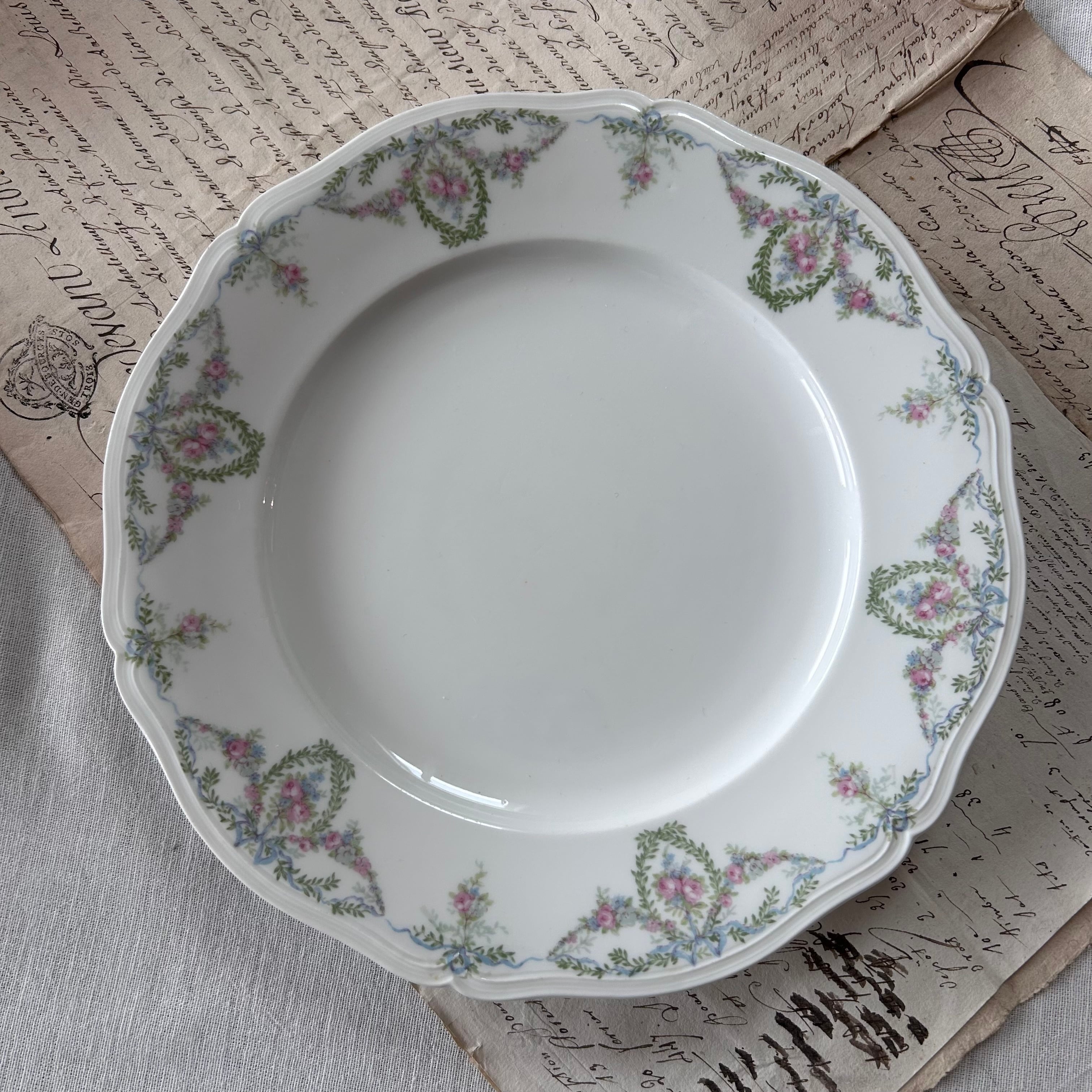 【フランスアンティーク】 E. Bourgeois Paris向 リモージュ バラのガーランド プレート 平皿