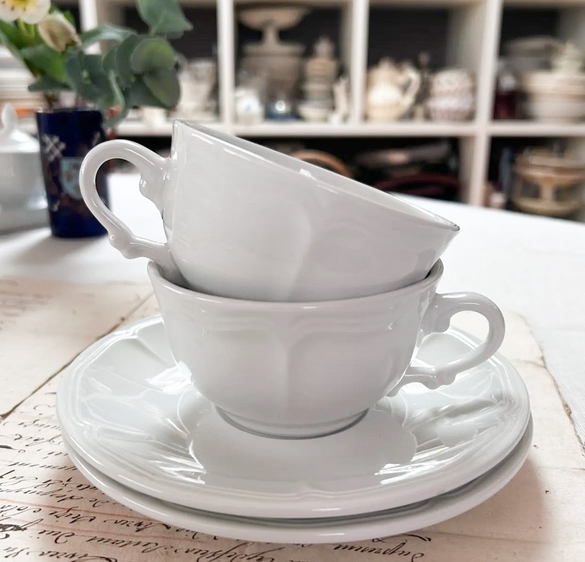 フランスの老舗陶器ブランド、サルグミンヌによるホワイトのカップ&ソーサーセット。クラシックで上品な花リムレリーフが施されたシンプルながら存在感のあるデザインは、どんなテーブルにもやさしく馴染みます。控えめな装飾が洗練された雰囲気を演出し、日常使いはもちろん、来客時にもおすすめです。背面にはサルグミンヌの刻印あり。こちらラストの1客。