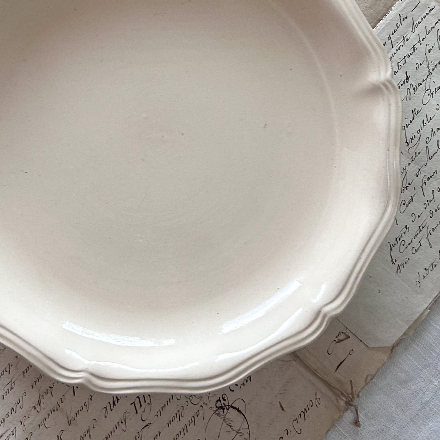 フランス東部の名窯サルグミンヌによる、やわらかなアイボリーカラー、無地の花リムのコンポティエです。縁にスカラップ装飾が施されたシンプルなフォルムは、使い勝手が良く、日常の食卓にも特別なシーンにもよく馴染みます。広い世代に人気のある花リムシリーズ、状態の良いものはなかなかレアなのでこの機会にどうぞ!