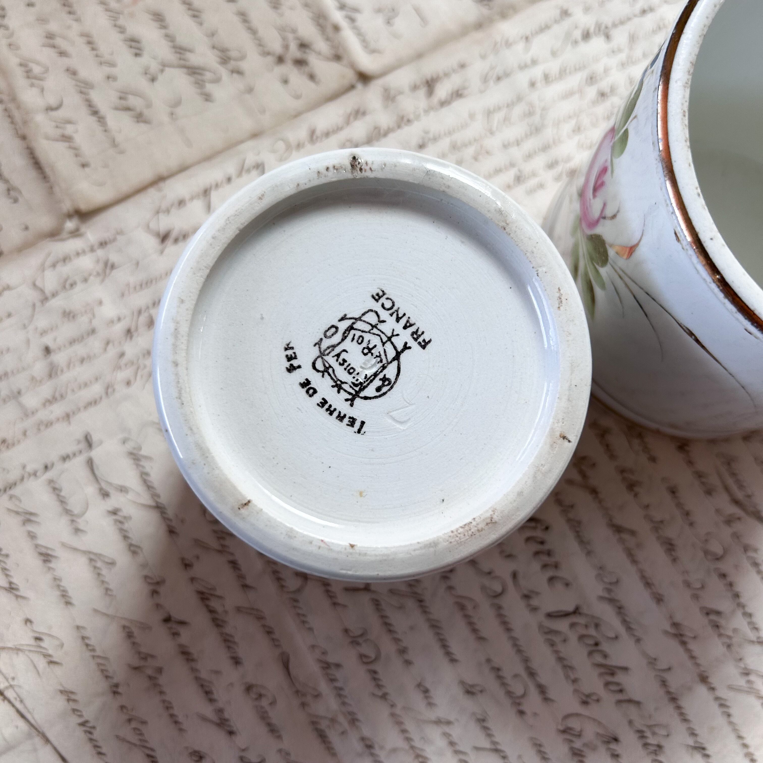 【フランスアンティーク】Choisy-le-Roi (ショワジールロワ) 手書きのバラが可愛いキャニスター Poivre