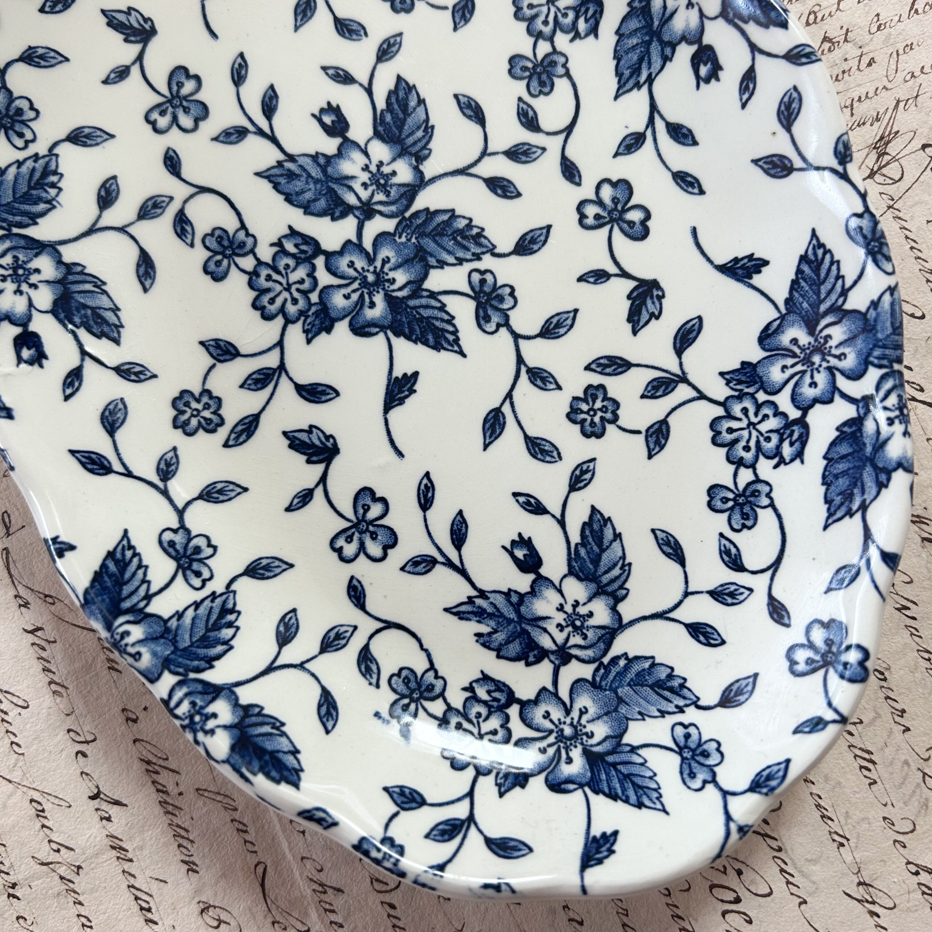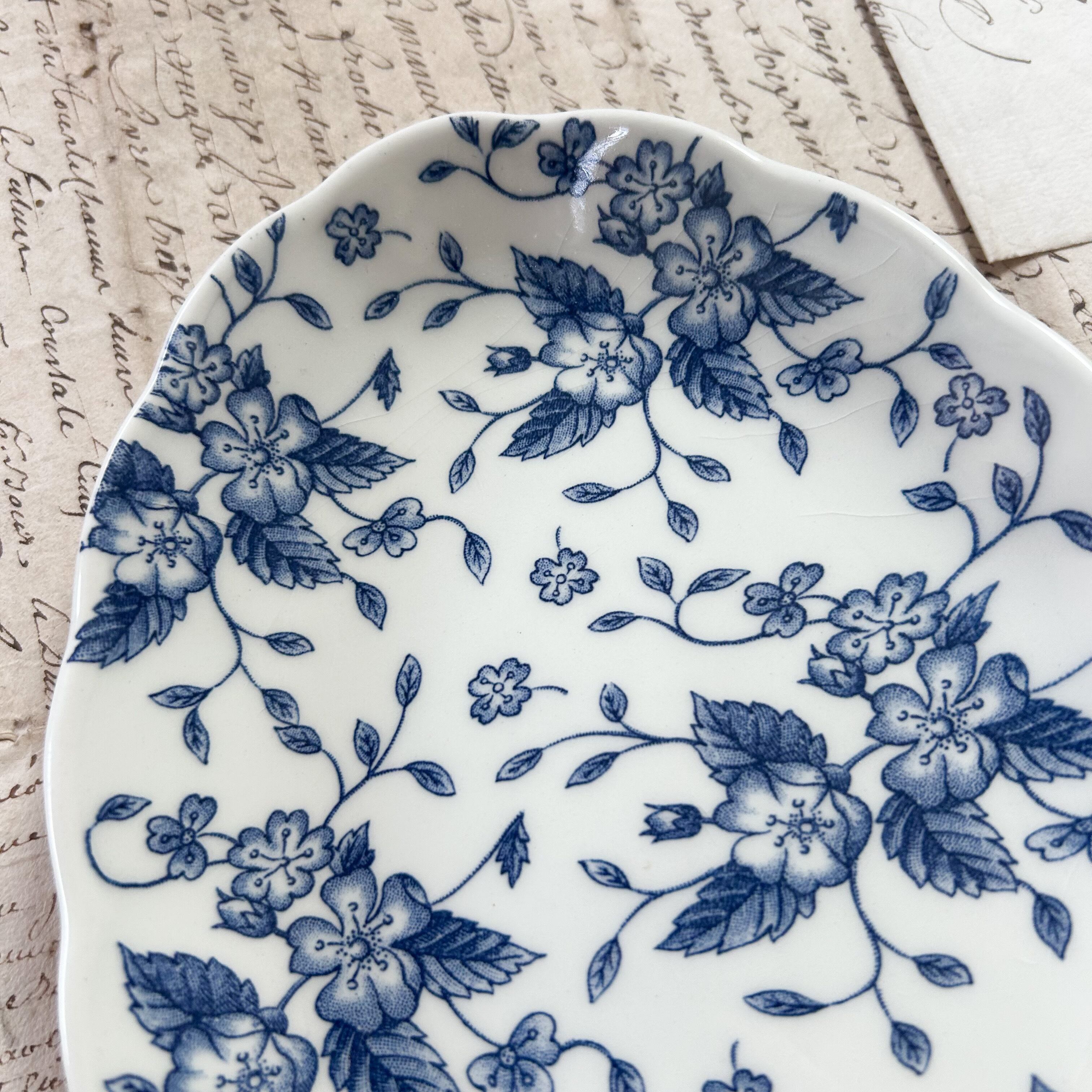 白地にブルーの花々を散りばめた「Bouquet」パターン。繊細なチンツ模様が器全体を彩り、テーブルに上品な雰囲気を添えます。オードブルや副菜、デザートなどを盛り付けるのにぴったりのサイズです。