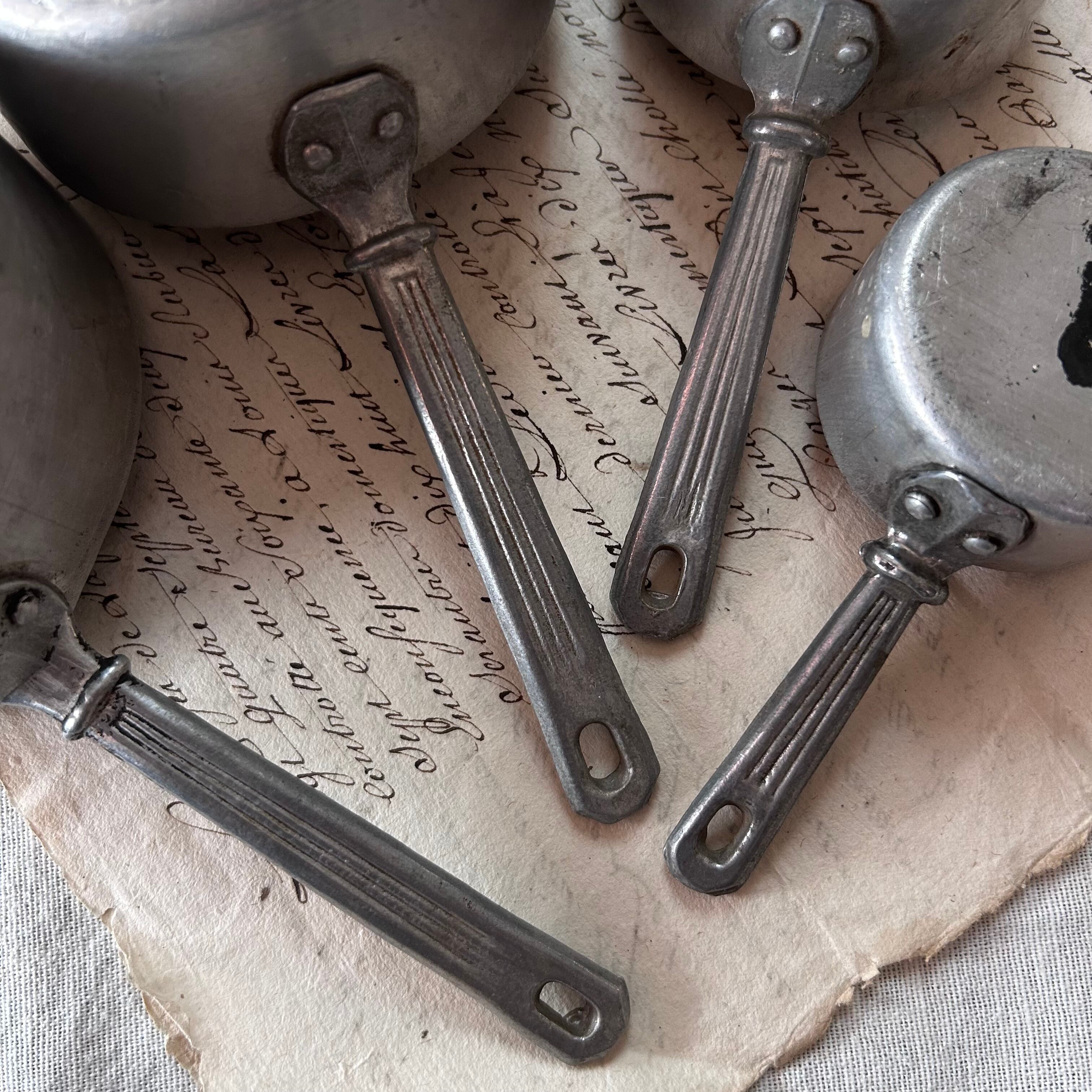 【フランスアンティーク】 ディネット(おままごと用)アルミミニチュア片手鍋 4点セット