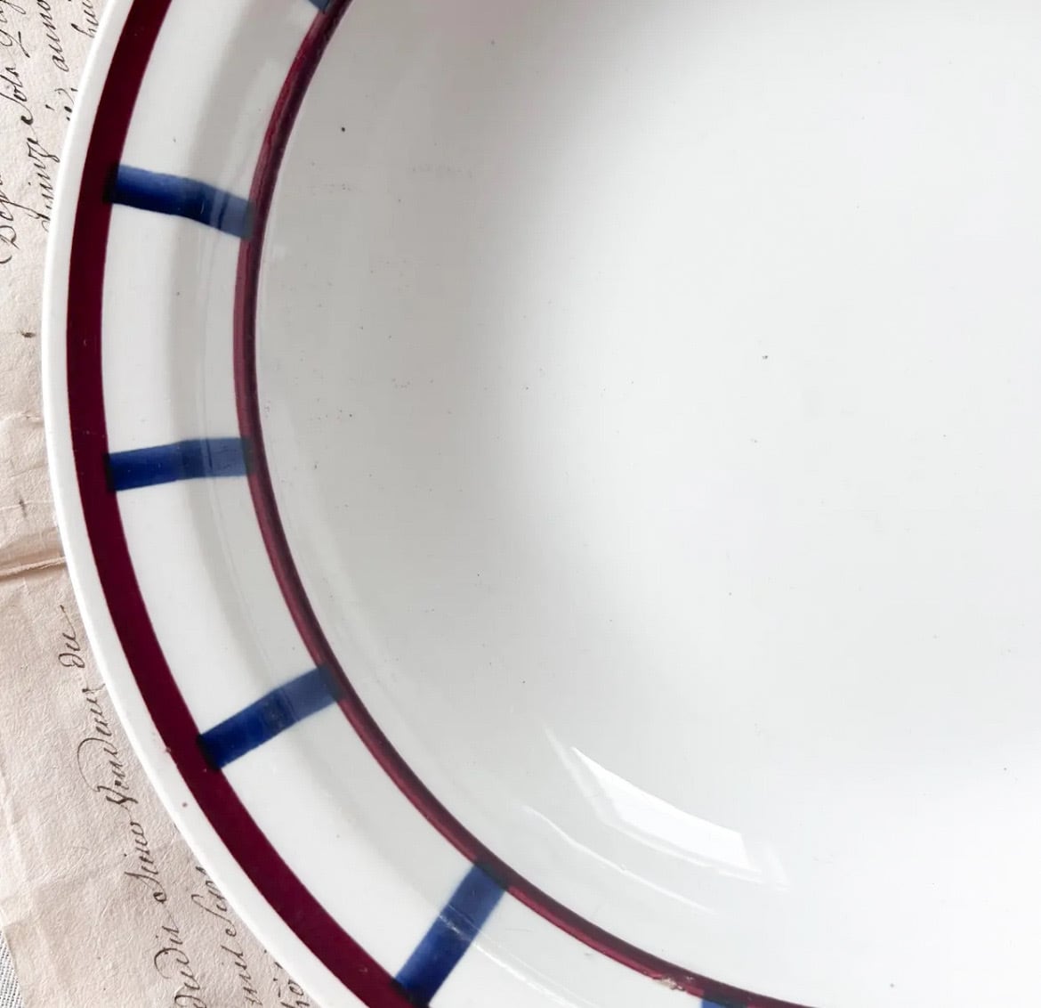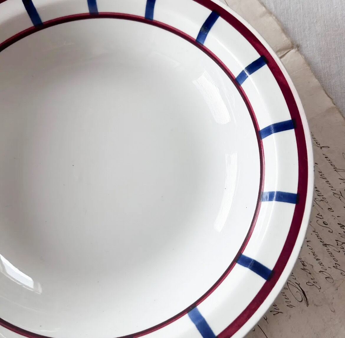 【フランスアンティーク】 Creil et Montereau (クレイユエモントロー)Bearn シリーズ バスク柄 深めのサービスプレート ボウル