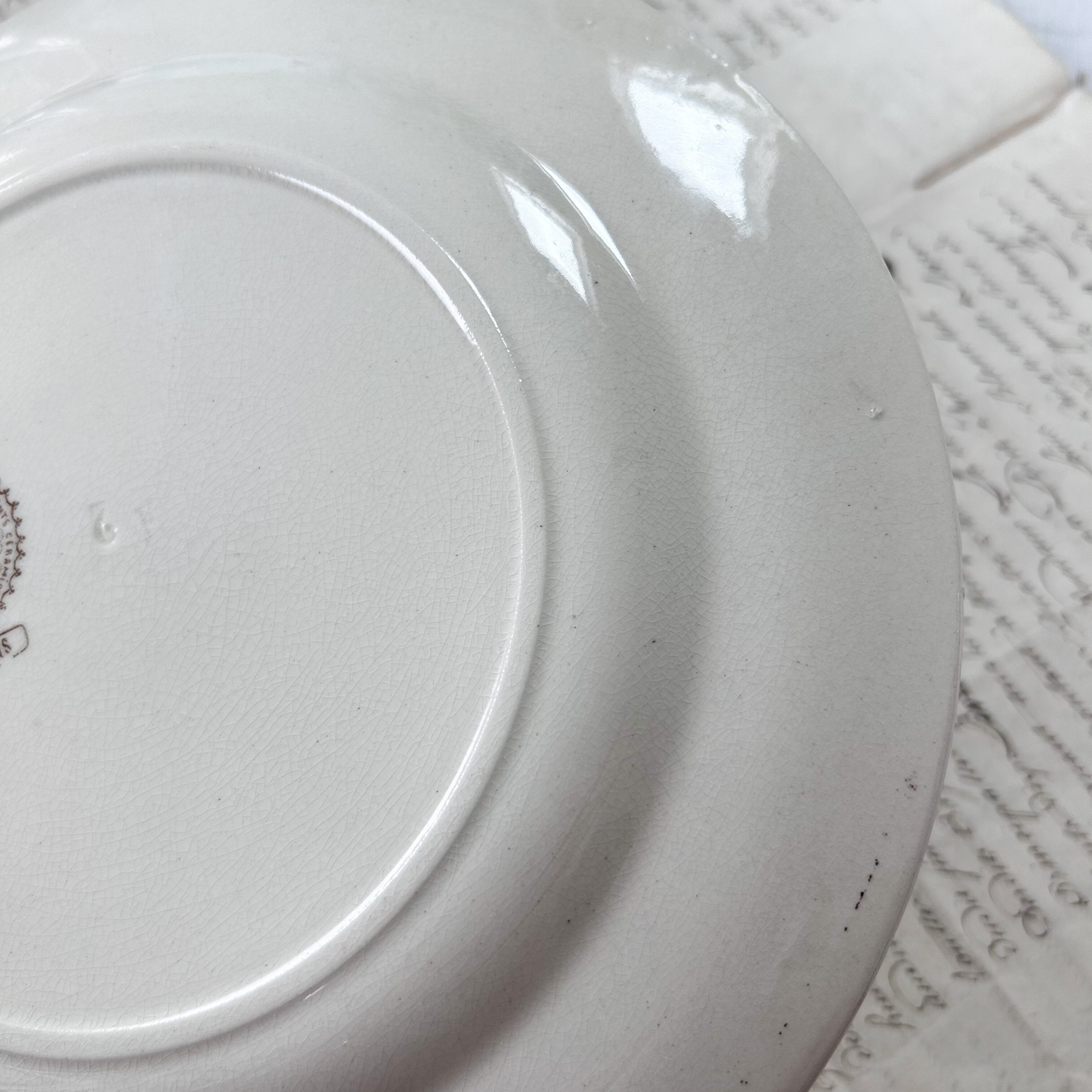 裏面に若干の変色、貫入等経年劣化、釉薬のムラは見られますが、ヒビや欠けはなく、アンティークとして大変良好なコンディションです。