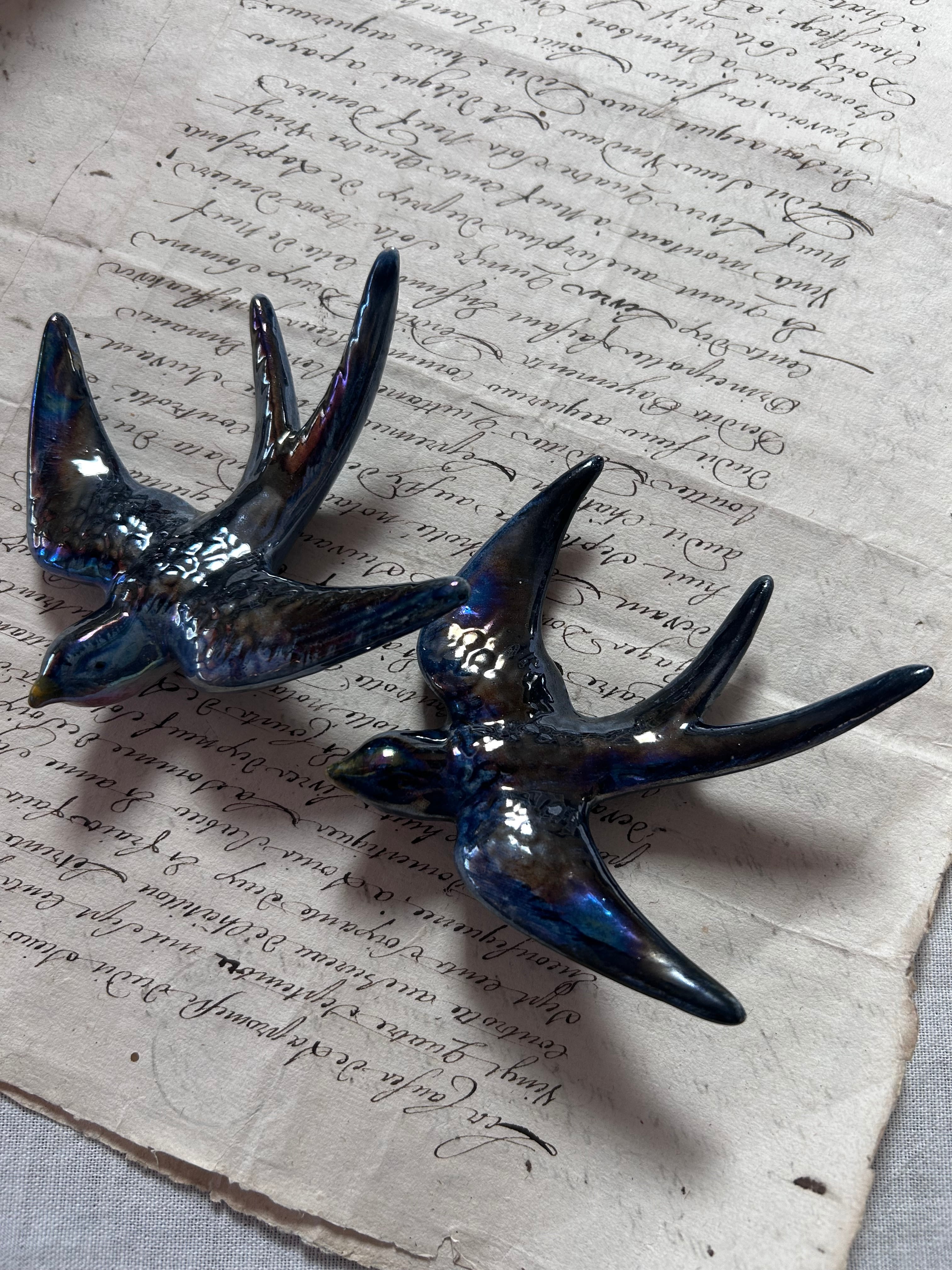 2→1 ウォールデコ 陶器製 ツバメ フランス アンティーク