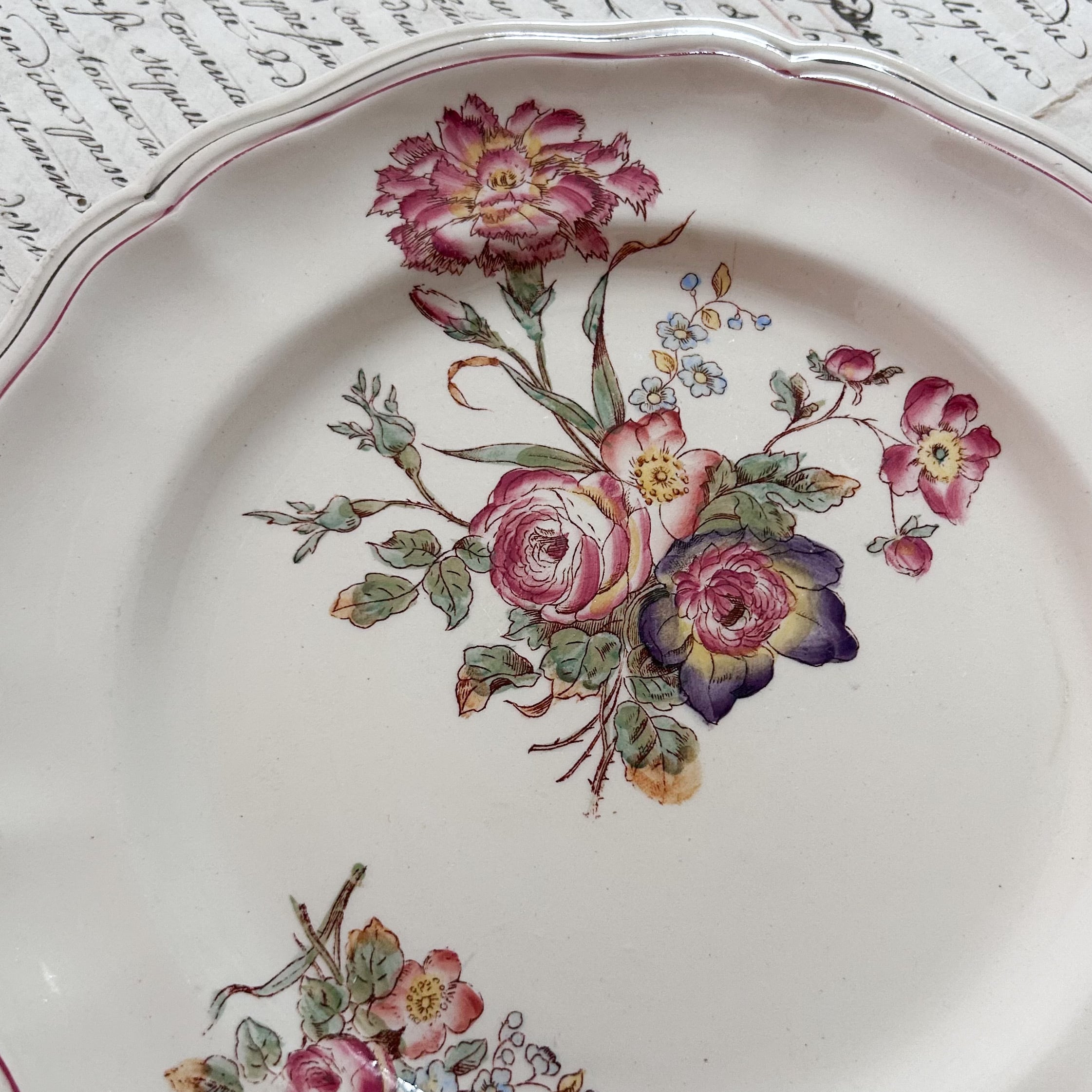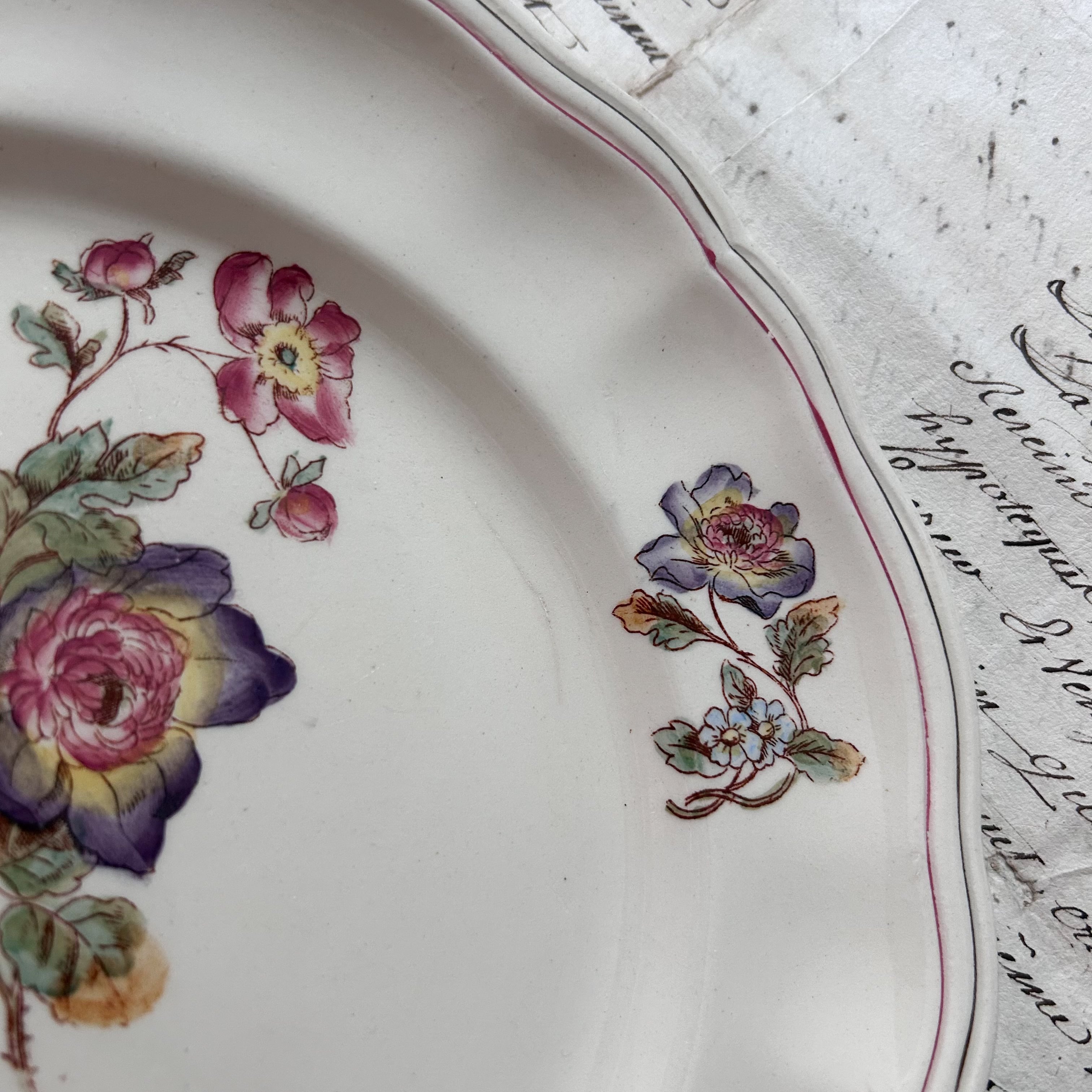 【フランスアンティーク】 Longchamp (ロンシャン)花リム 平皿 プレート D