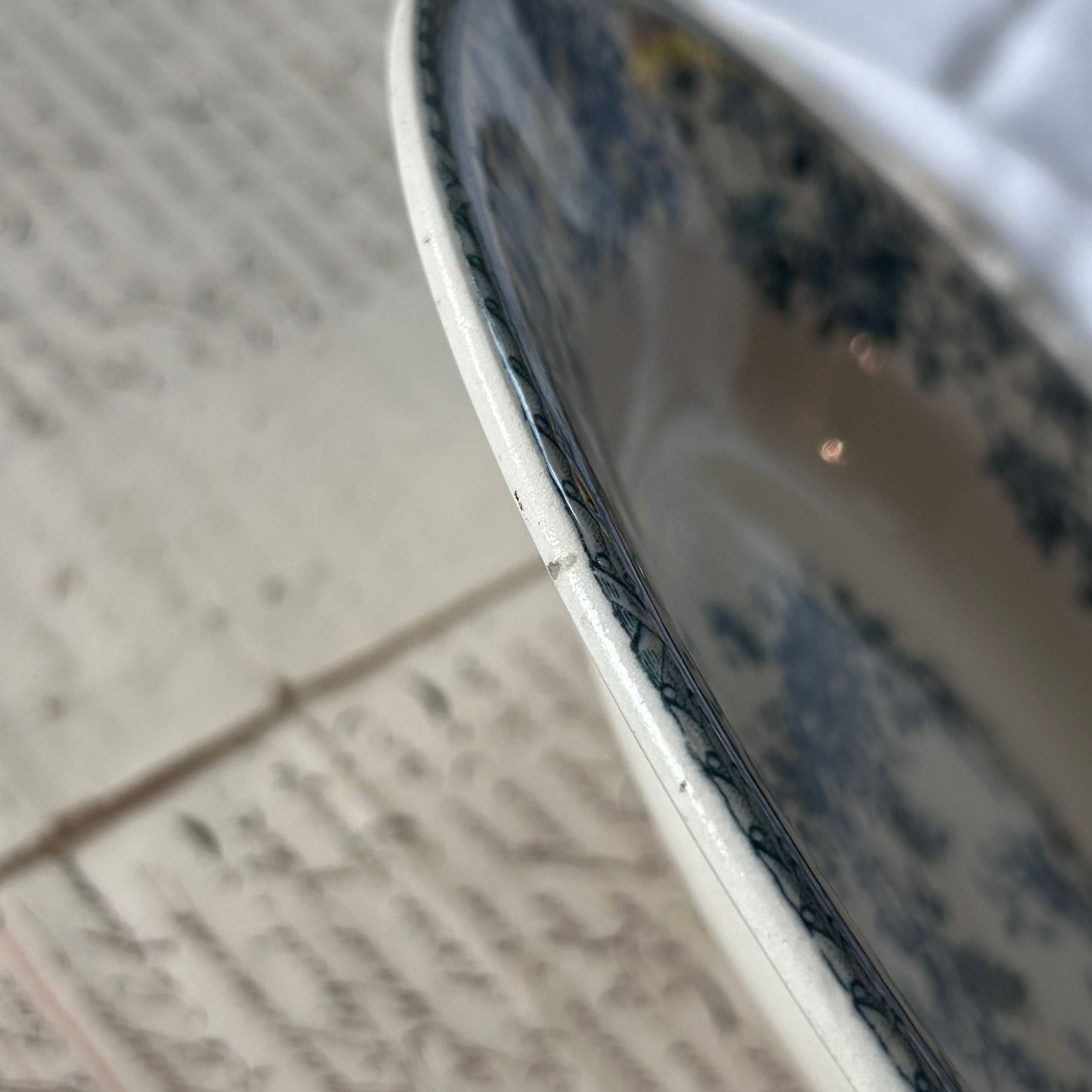 リムに極小の釉薬のハゲあり。その他釉薬のムラ、インクのトビ、貫入等経年劣化は見られますが、使用感少なめの大変美しいアンティークコンディションです。