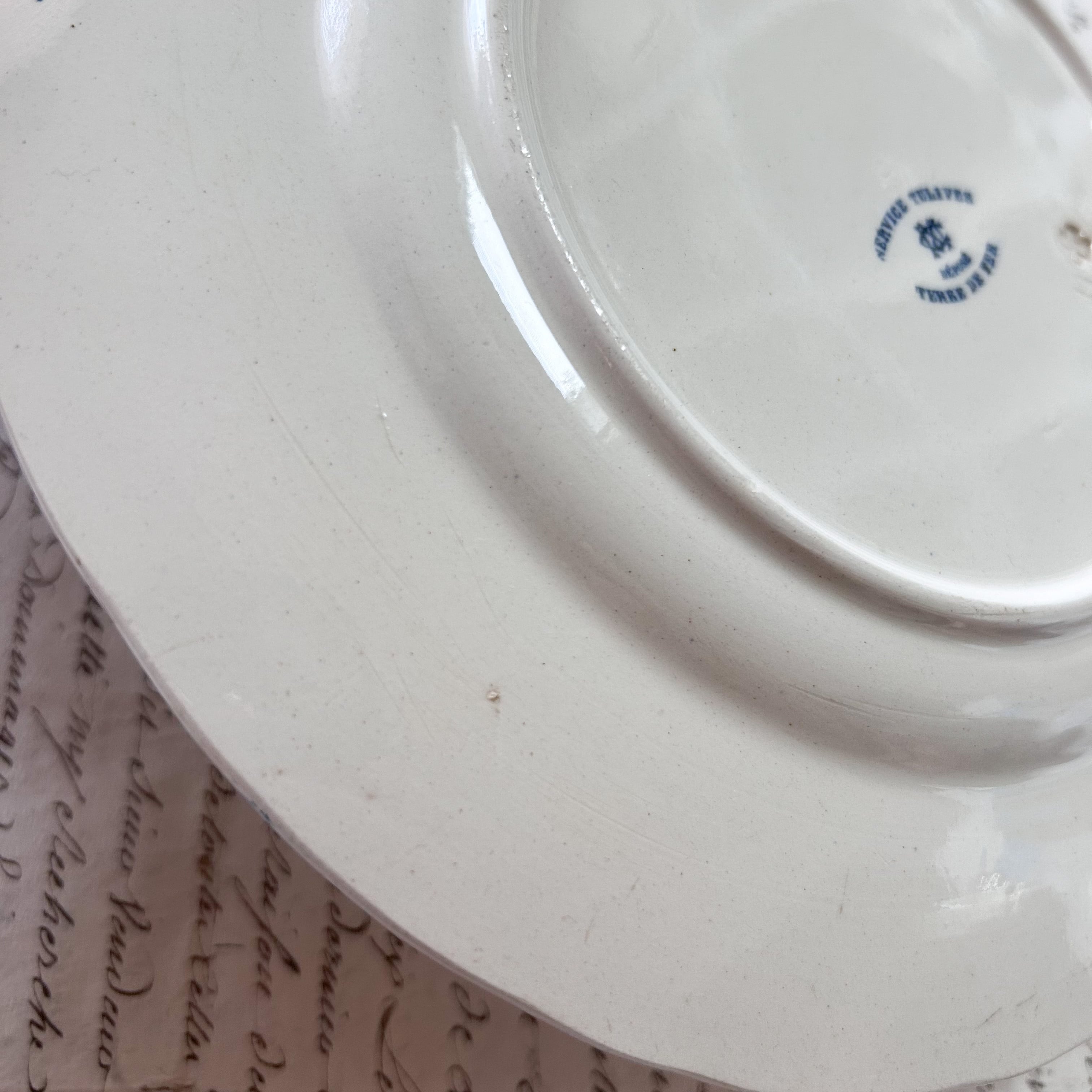 裏面にライン状の窯傷あり。(釉薬のっていますが若干の変色あり)その他スレ等の経年劣化、釉薬のムラは見られますが、大きなダメージもなく、表面はつややかで良好なアンティークコンディションです。こちらこのロット、最後の1枚です。