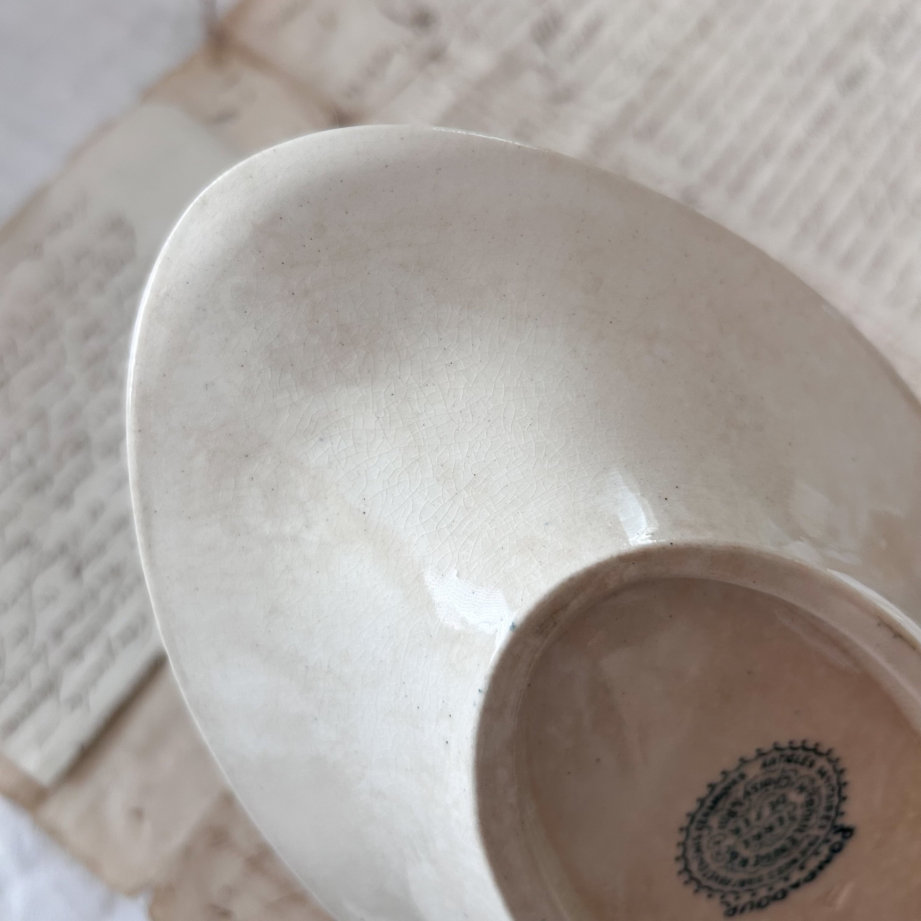 美しく枯れた雰囲気が素敵なラヴィエ。リムに小さなチップあり。その他貫入、変色等経年劣化は見られますがつややかな趣きのあるアンティークコンディションです。