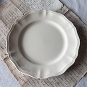 フランス東部の名窯サルグミンヌによる、やわらかなアイボリーカラーの無地の花リムプレートです。縁にスカラップ装飾が施されたシンプルなフォルムは、使い勝手が良く、日常の食卓にも特別なシーンにもよく馴染みます。広い世代に人気のある花リムプレート、状態の良いものはなかなかレアなのでこの機会にどうぞ!
