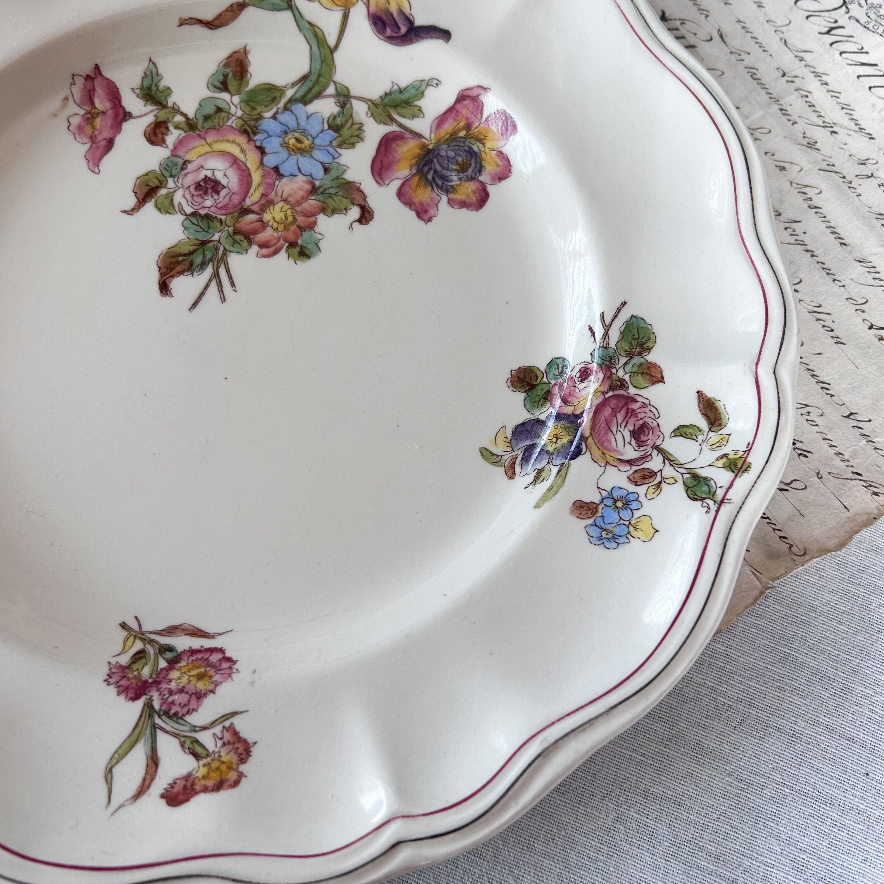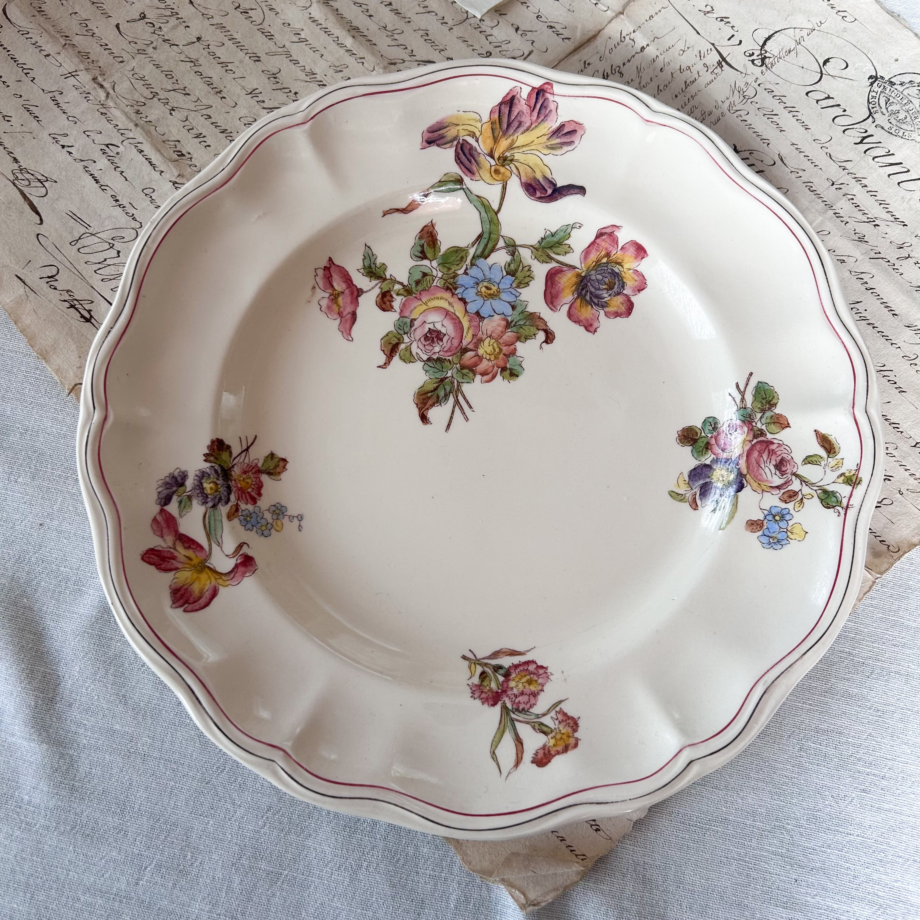 【フランスアンティーク】 Longchamp (ロンシャン)花リム 平皿 プレート A