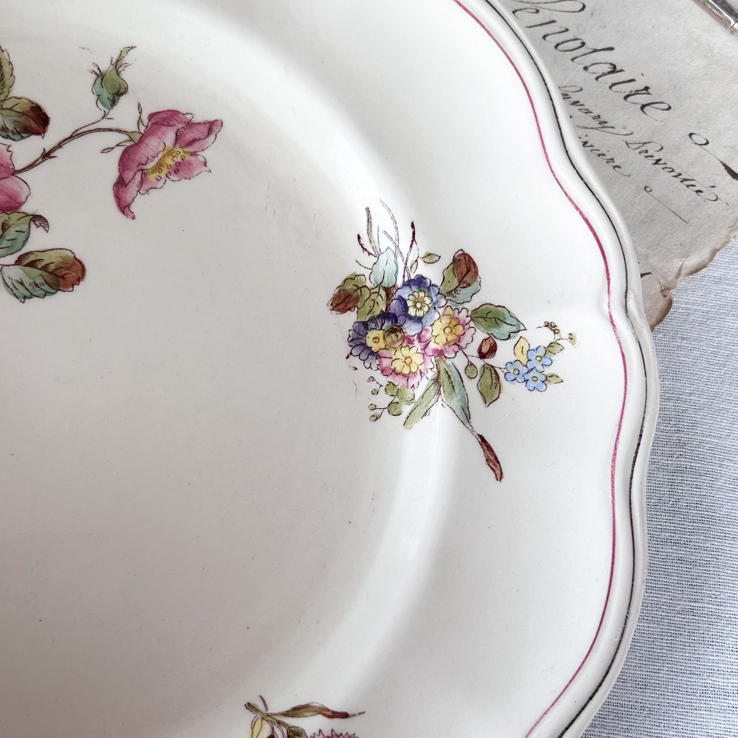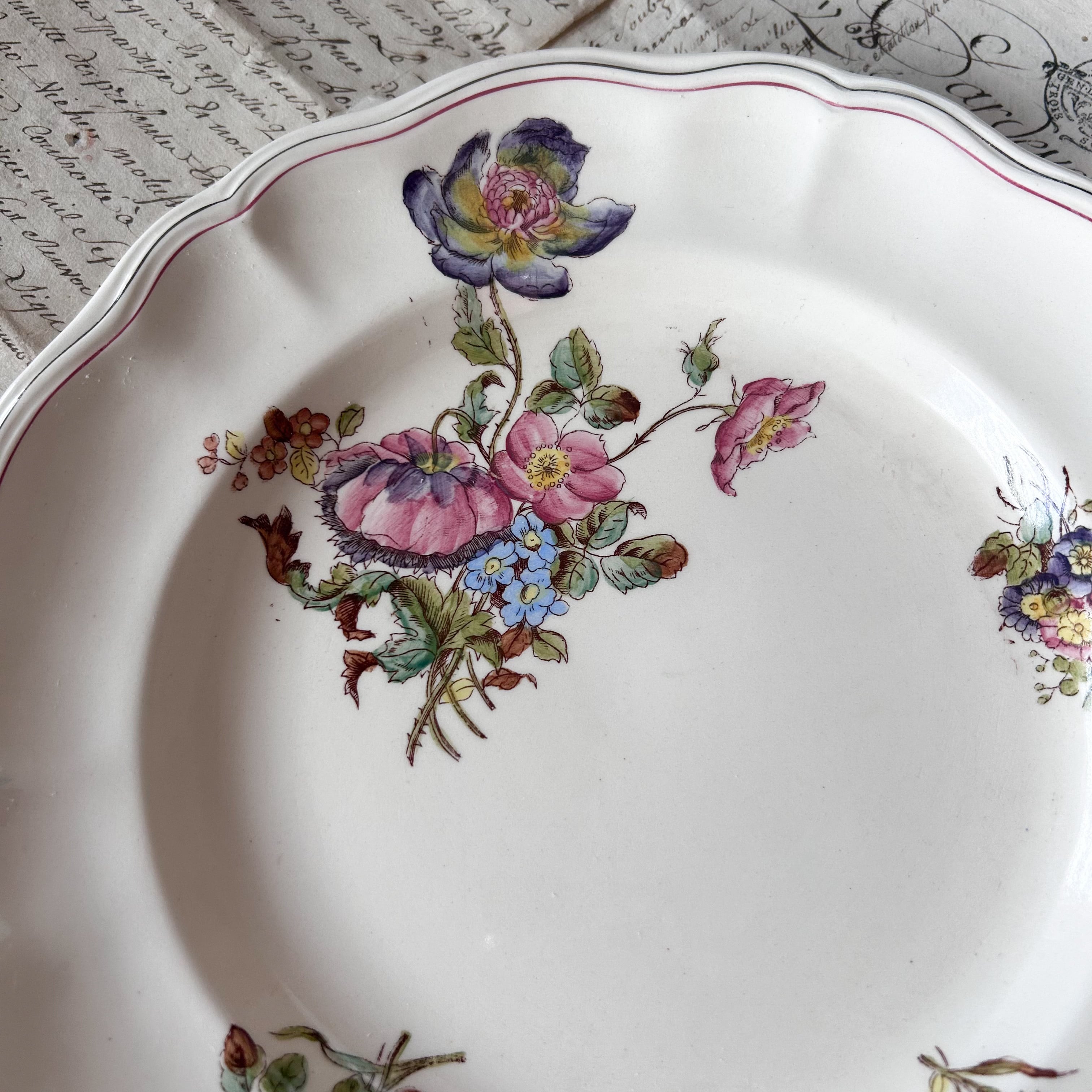 【フランスアンティーク】 Longchamp (ロンシャン)花リム 平皿 プレート B