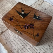 【フランスアンティーク】モシュリンヌ ツバメとスミレのウッドボックス