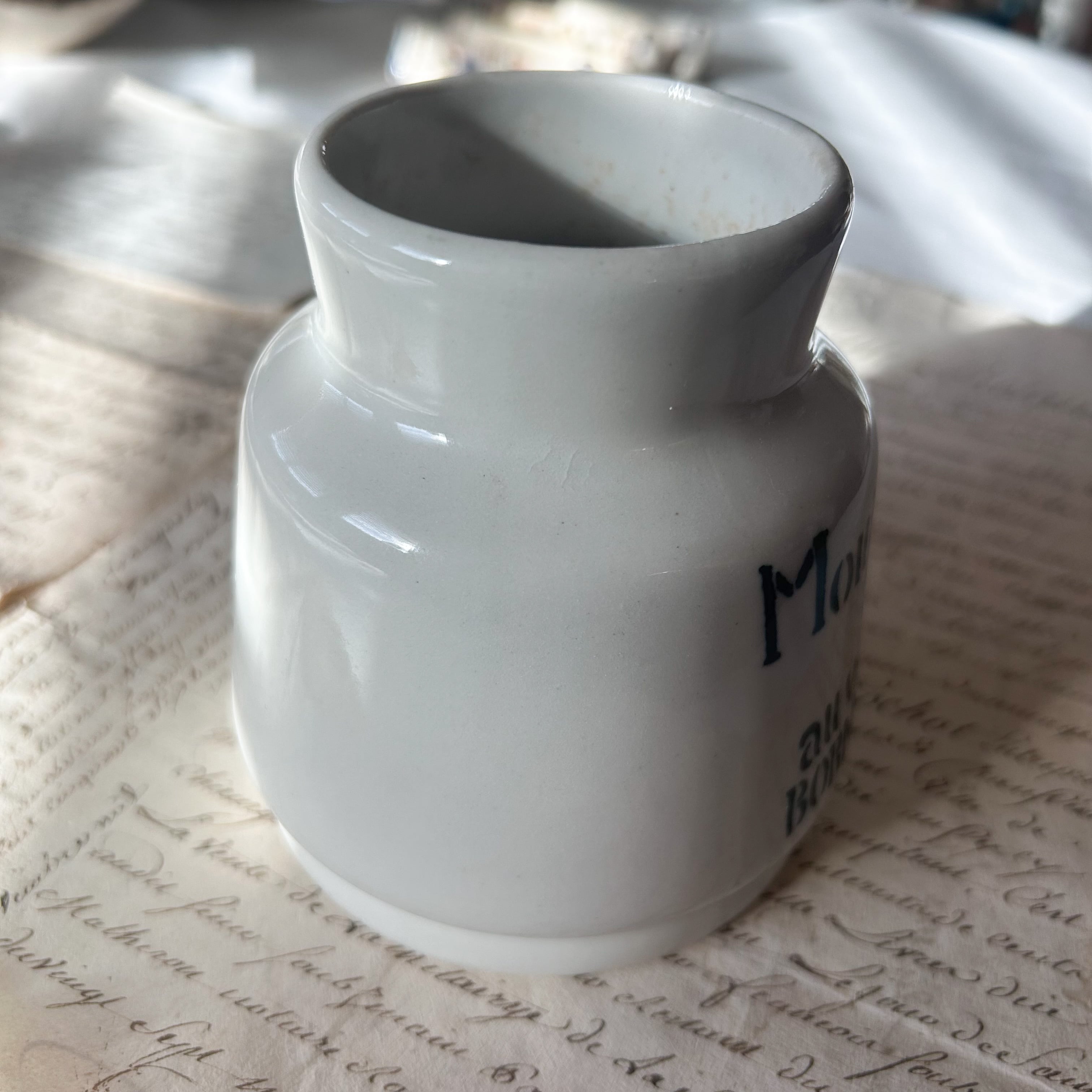フランス・ブルゴーニュ地方ディジョンの老舗マスタードメーカー「Bornier」が、かつて販売していた陶器製マスタードポットです。フランス語の印象的なレタリングが施されており、シンプルながらどこか洒落た佇まいが魅力。キッチンや食卓にちょこんと飾るだけで、フレンチな雰囲気を演出してくれます。