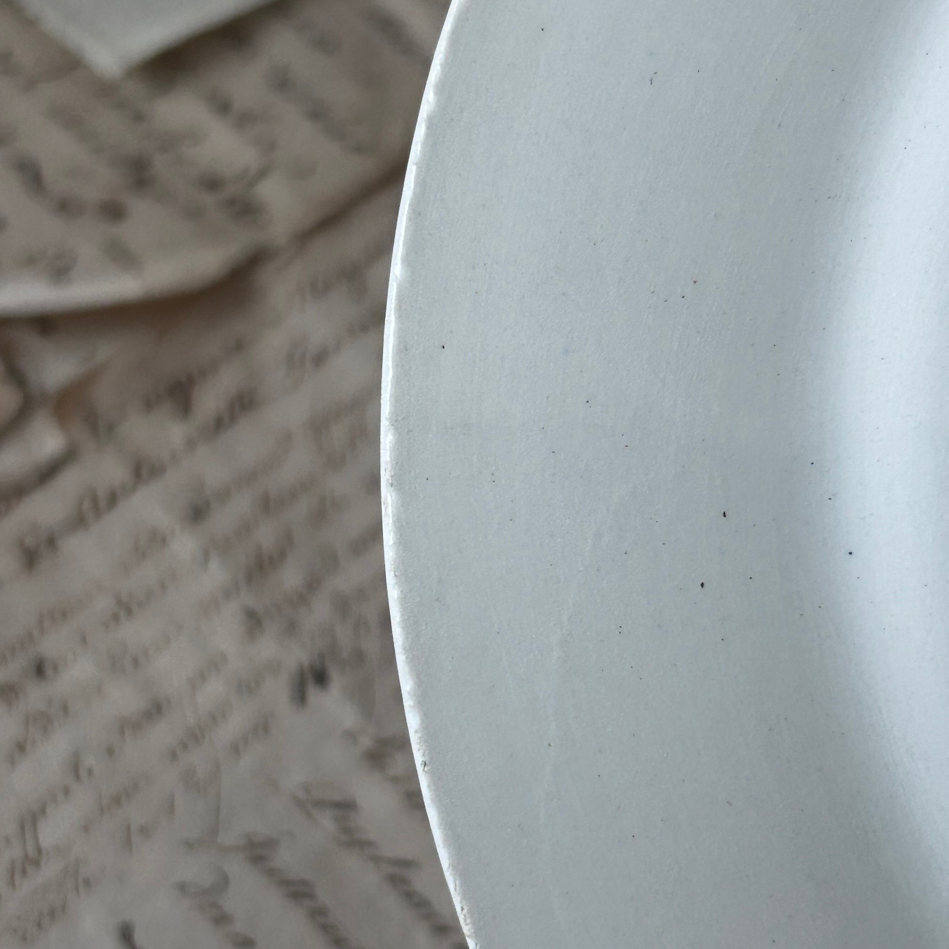 カトラリー跡、リムにギザギザした部分あり。スレ等経年劣化や釉薬のヨレ、裏面に製造時の支え跡などが見られますが、つややかな美しい状態です。