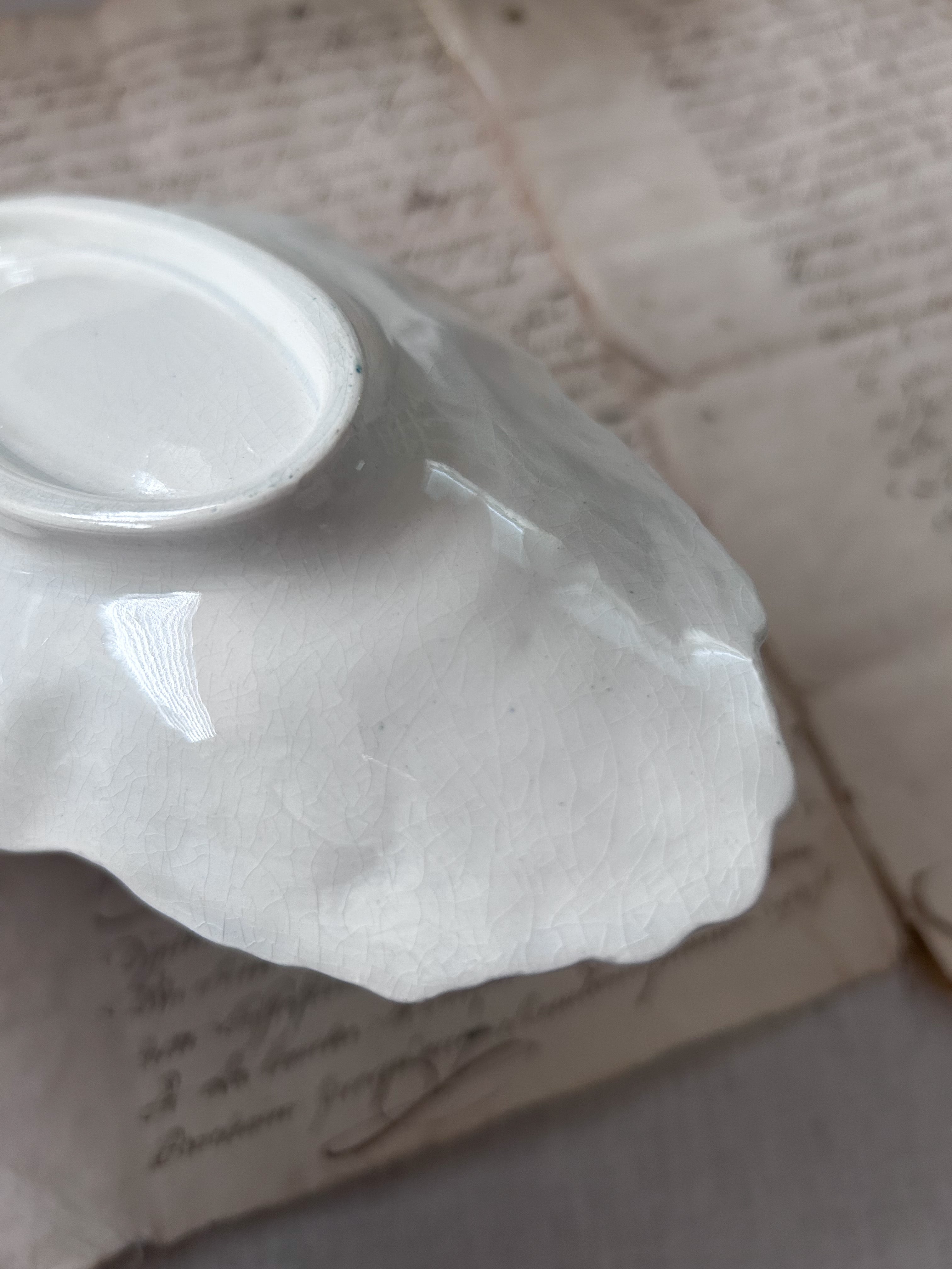 オードブルや小菓子、果物をのせる器としてはもちろん、アクセサリーや鍵などのトレイとして、またディスプレイアイテムとしてもおすすめです。古い紙ものやリネン、他の白い器とも相性が良く、空間に静かな華やぎを添えてくれます。