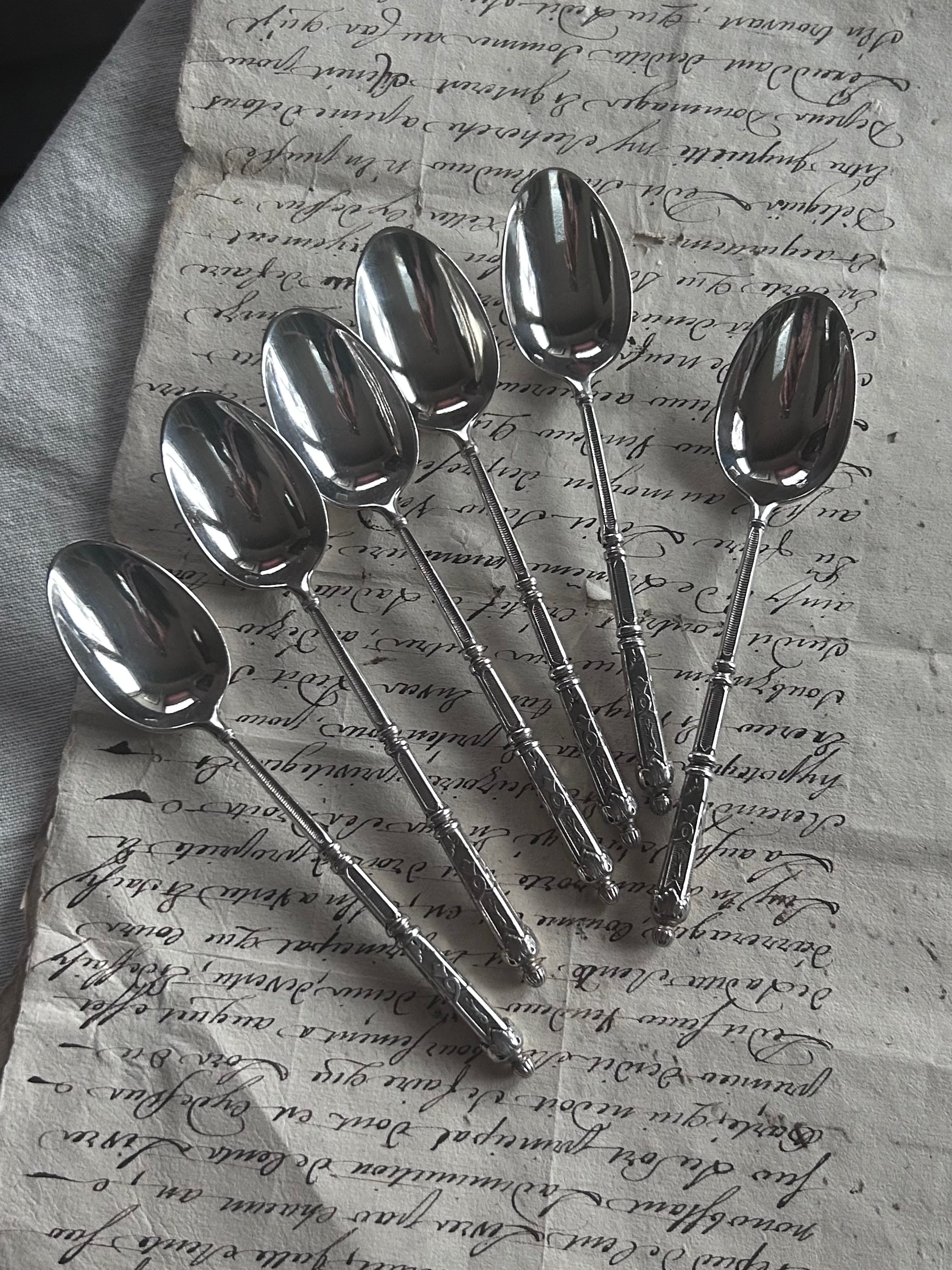 送料430円【フランスアンティーク】ロシアスタイル シルバープレート デザートスプーン
