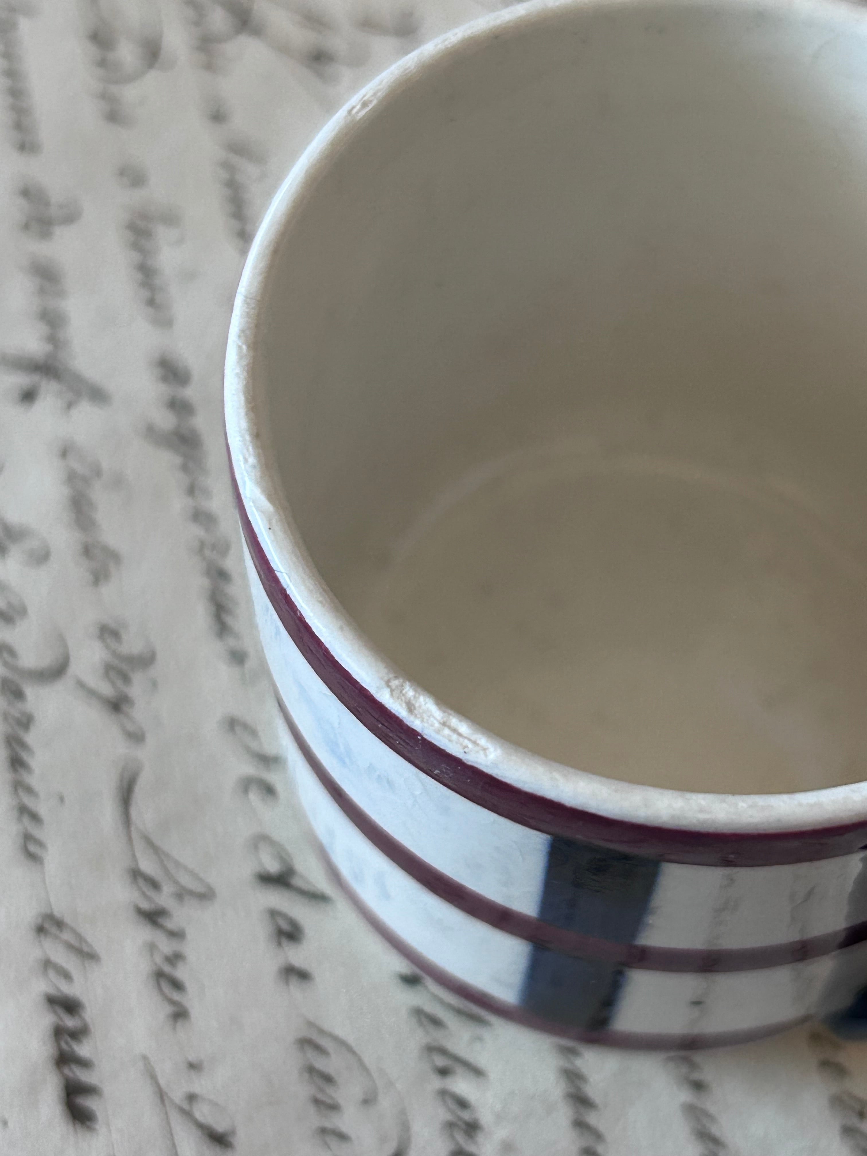 赤と青のラインが交互に並ぶ、フランスらしいトリコロールと素朴な温かみを感じさせる「バスク柄」のC&S。こちらは、数あるバスク柄の中でも人気の高い、クレイユ・エ・モントロー製Bearn シリーズです。潔い直線のラインが刻むブルーとルージュのコントラストが美しく、田舎のビストロを思わせるかしい雰囲気。白磁とのバランスもよく、和洋問わず日常使いに取り入れやすいのが魅力です。