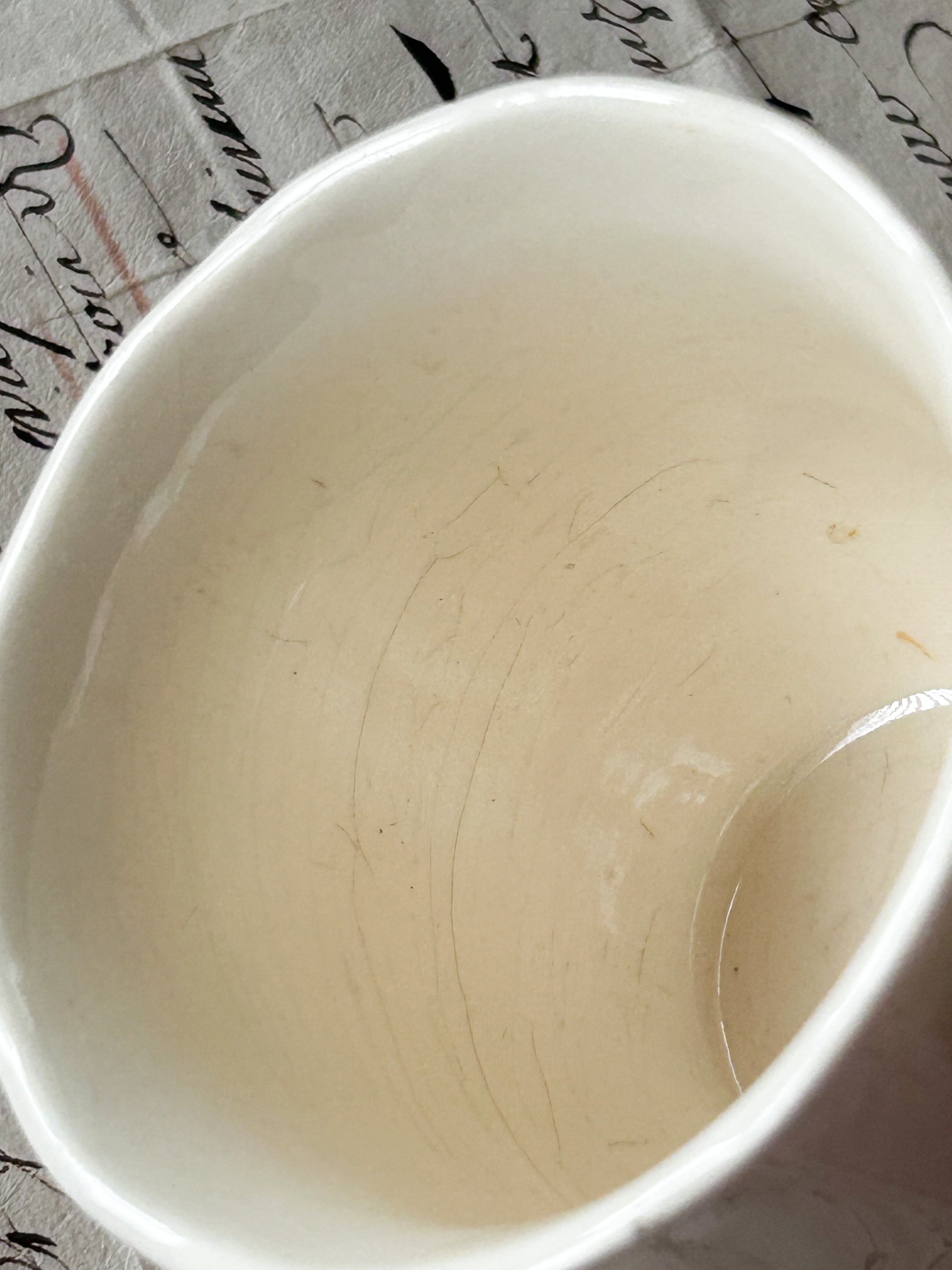カップにわずかなスレあり。その他若干の変色等経年劣化、ソーサーに釉薬のムラは見られますが、大きなダメージのないヴィンテージコンディションです。