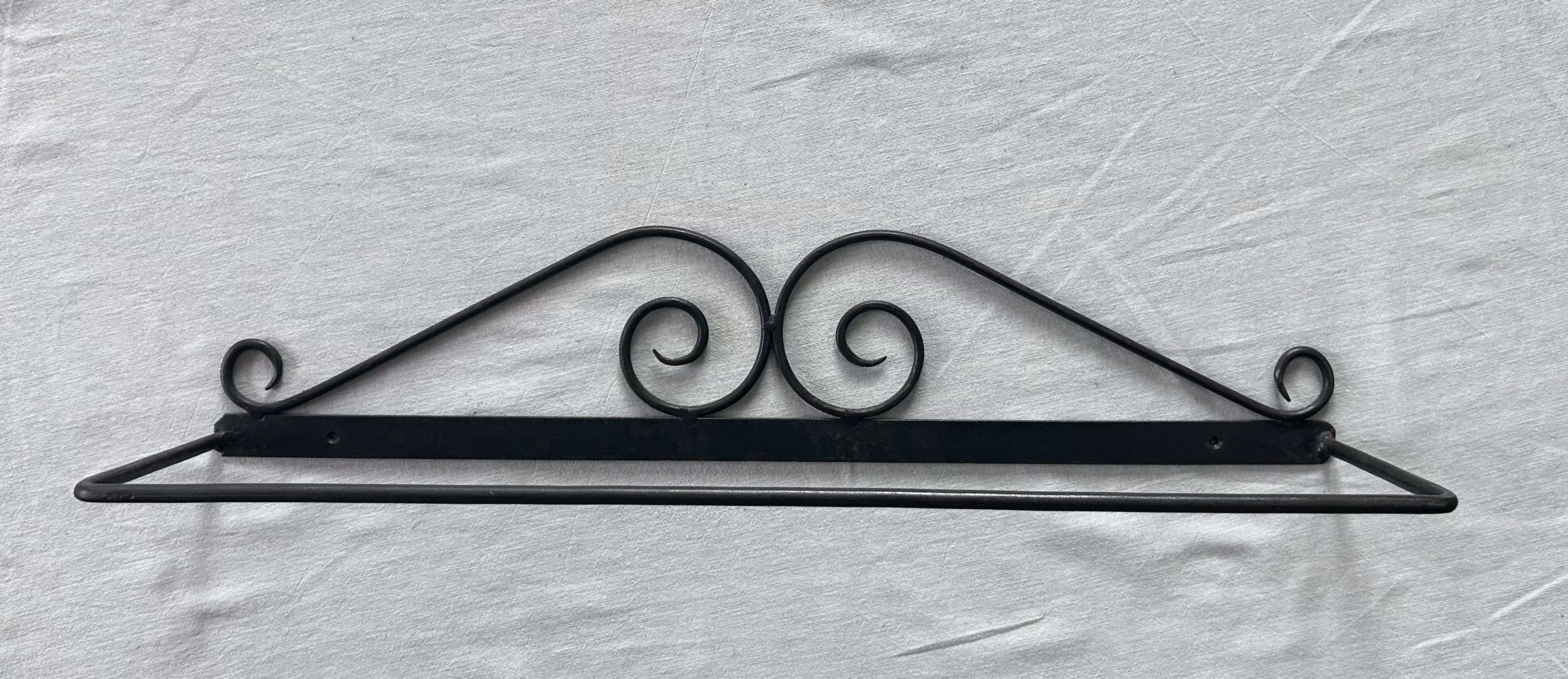 シンプルなブラックアイアンに、中央のスクロールデザインが上品なアクセントになっています。無駄のないフォルムで、洗面所やキッチン、トイレなどさまざまな空間に自然に馴染みます。