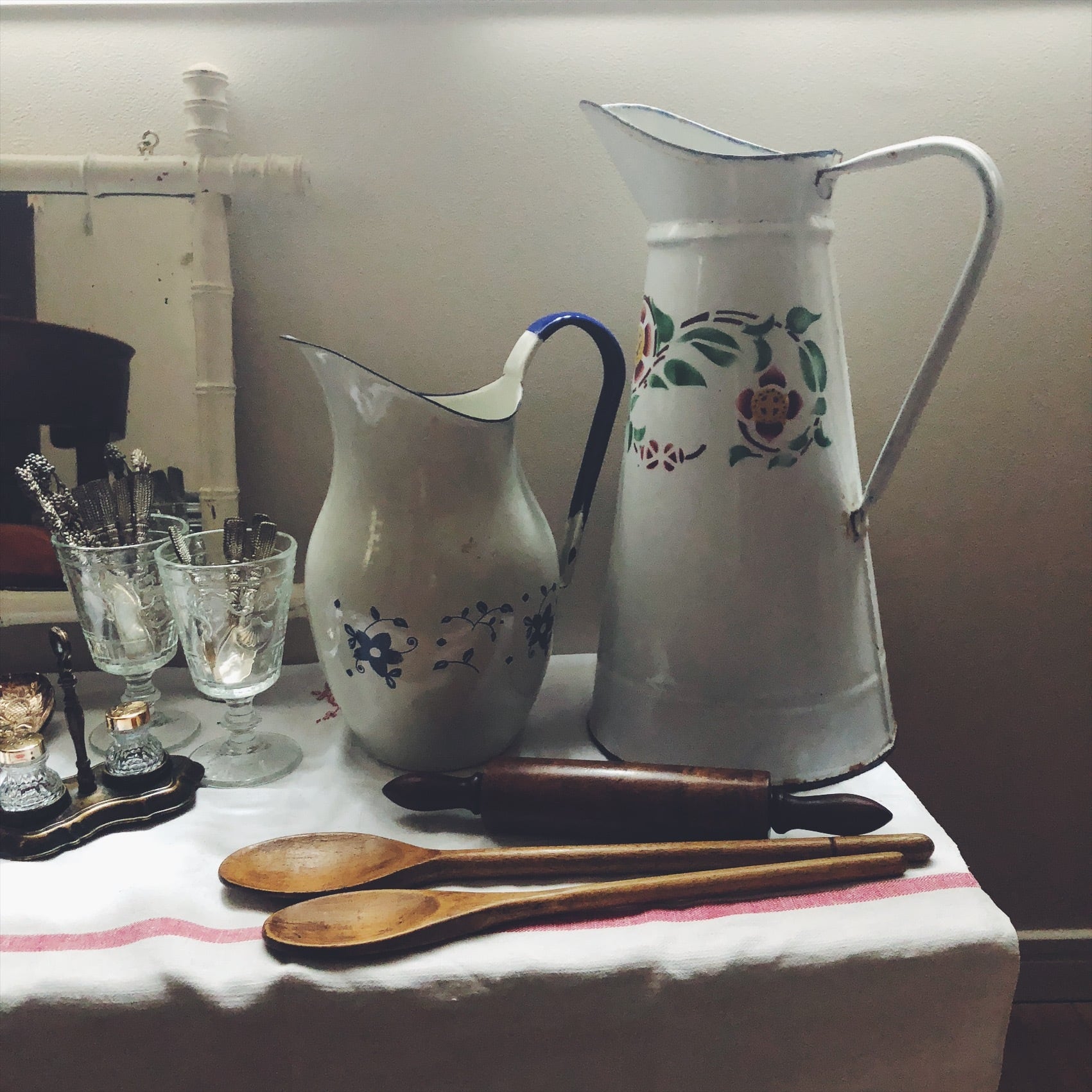 ホーロー ピッチャー ローズ柄 ジャグ 大きめ インテリア 花瓶 アートフラワー ファームハウス ブロカント