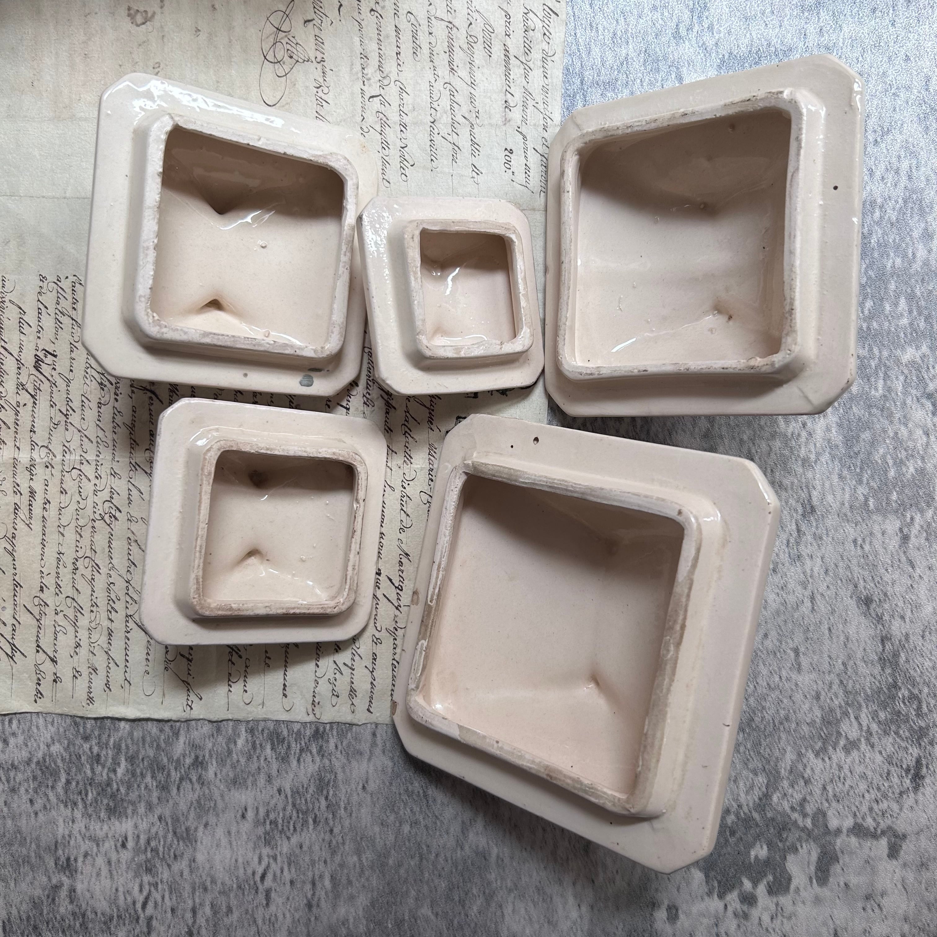 陶器製 ハンドペイントのキャニスター フランス アンティーク 5個セット キッチン雑貨 ハンドペイント 美品 ファームハウス