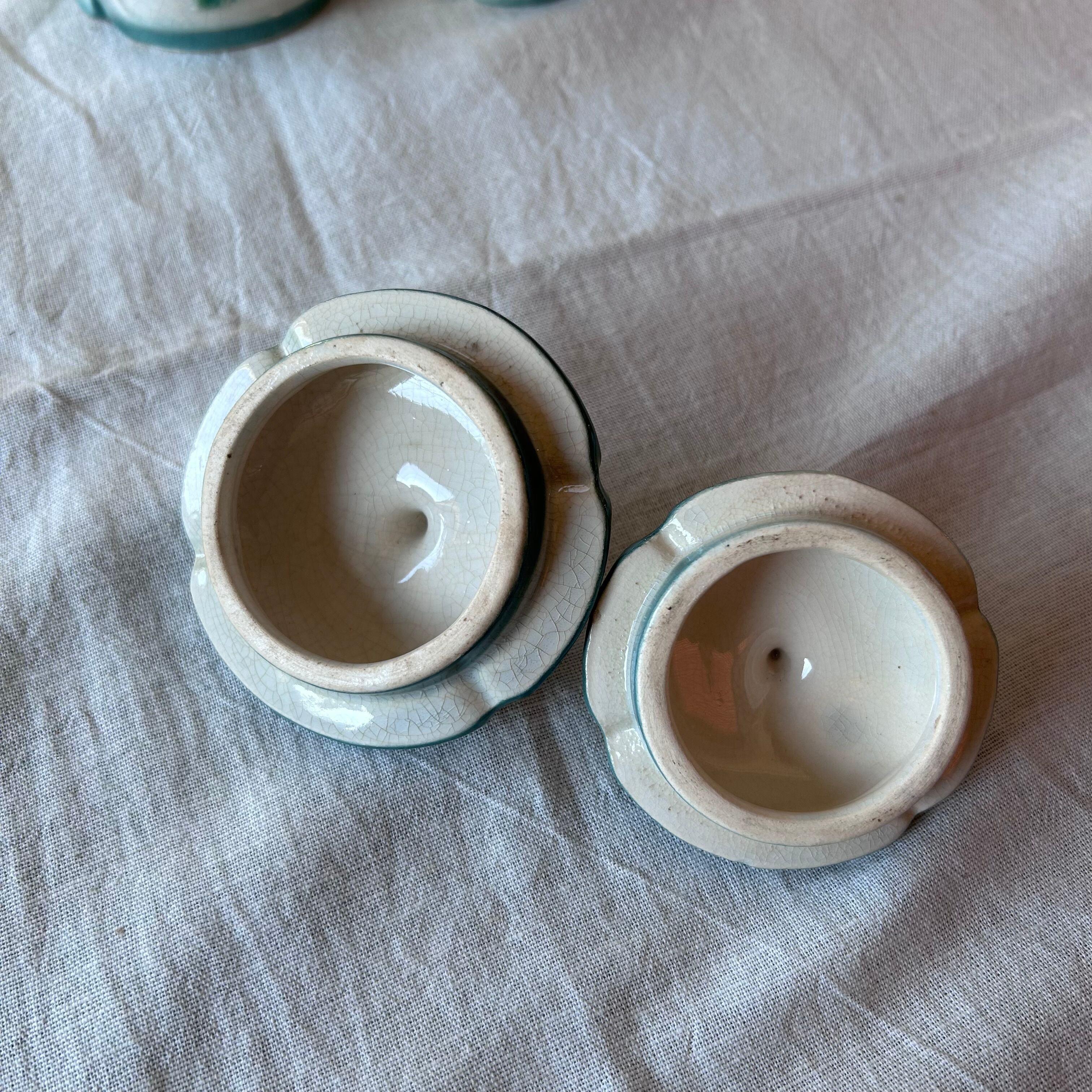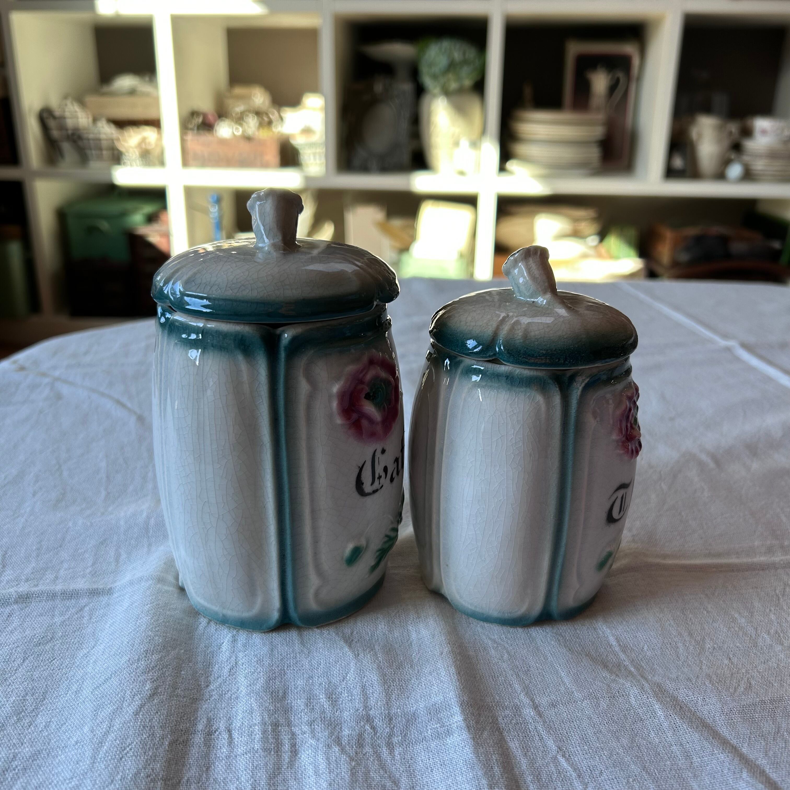 陶器製 バルボティーヌのキャニスター 2個セット フランス アンティーク キッチン雑貨 ハンドペイント 美品 ファームハウス